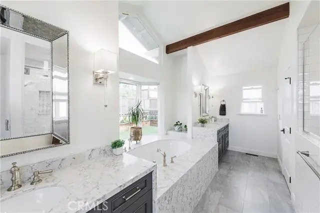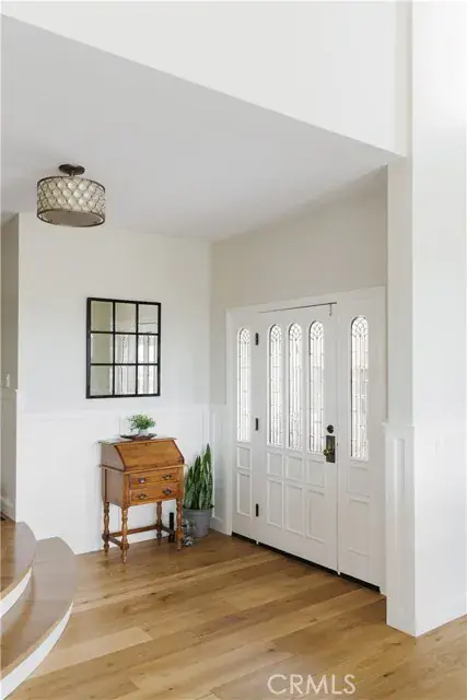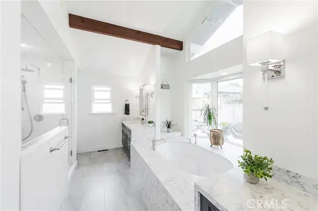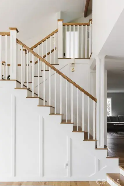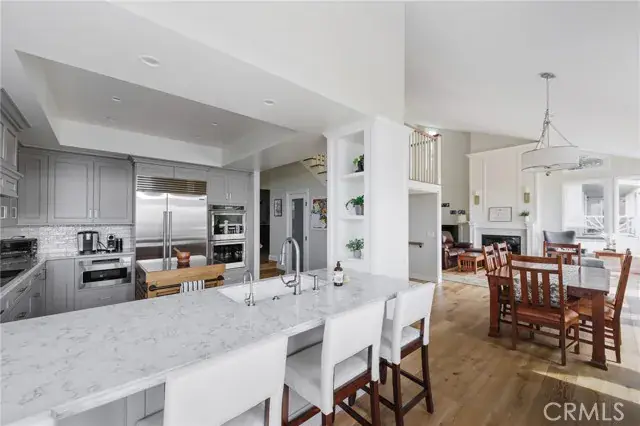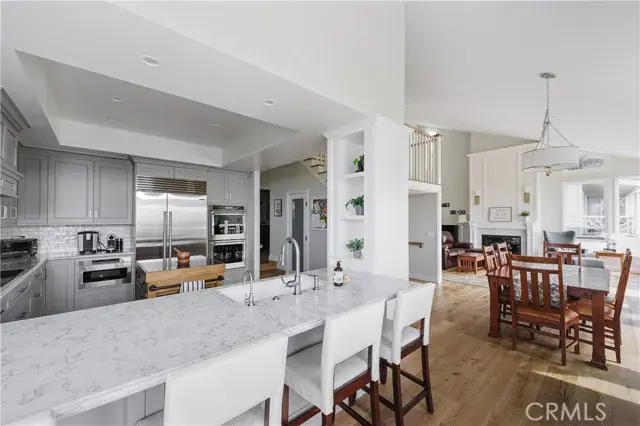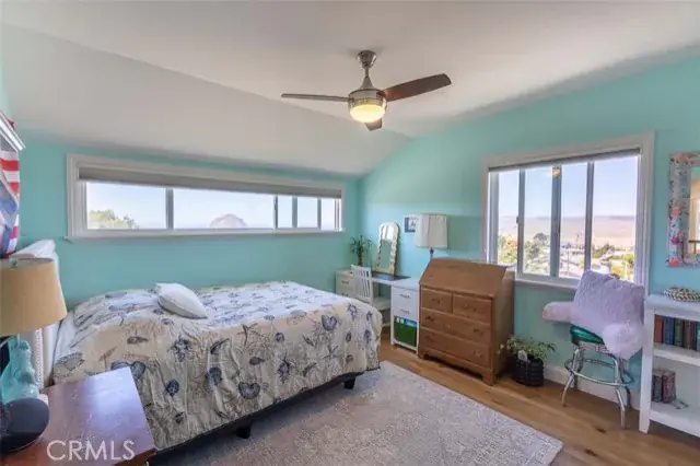 Enjoy iconic views of Morro Rock and the ocean from this top to bottom fully renovated move-in ready home in prestigious Morro Heights. This home features a main-level primary suite and 3 more bedrooms upstairs, with a total of 2.5 baths. The walls of glass and beautiful Andersen sliding French wood doors in the dining area allow for views of the ocean from the chef’s kitchen. The deck off the kitchen and dining is perfect for morning coffee and evening cocktails while you take in the views. The kitchen includes custom cabinetry, Viatera countertops, a KitchenAid 5 burner induction cooktop, Sub-Zero refrigerator, and other top of the line appliances. The living room is centered around the custom-tiled fireplace and is open to the dining area, creating the perfect entertaining environment. The flooring is a beautiful real wood Mediterranean Cannes hardwood throughout the entire house. Around the corner from the living room is the cozy family room with custom wood built-in desk and direct access to the sunroom / bonus area and backyard. The large main-level primary suite features vaulted ceilings and exposed beams, as well as a sitting area. The wood beam carries into the primary bath with dual Cambria Quartz counters and built-in bathtub, custom tile shower and radiant heated floors. The 3 good sized-upstairs bedrooms also offer views as well as wood flooring and ceiling fans. One upstairs bedroom is soundproofed professionally with custom built-in cabinetry and can be used as a music studio, entertainment room or yoga space. The upstairs bathroom is well-appointed and also has radiant heated floors. All the windows, sliders and doors are new as well as the mechanical systems. Below the main living area you have direct access to a 3-car finished garage with storage shelves, cabinets and an electric car charger. The beautifully landscaped backyard has artificial turf and flagstone pavers. The front deck is LED-lit with automatic dusk-to-dawn lighting. This turnkey home on a quiet street with nearby hiking trails and public golf course combines modern comfort with timeless coastal charm.