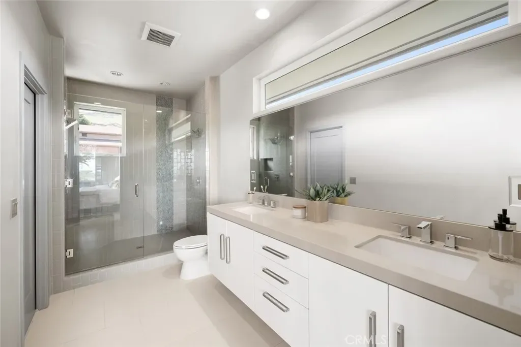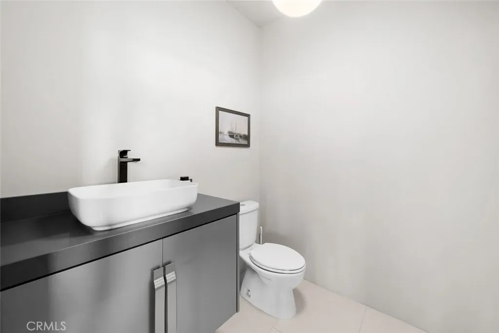 The upstairs primary suite is serene with private access to the ocean-view deck, a walk-in closet, and a spa-like ensuite bath complete with a floating dual-sink vanity and a beautifully tiled walk-in shower. A convenient half bath completes the upper level.