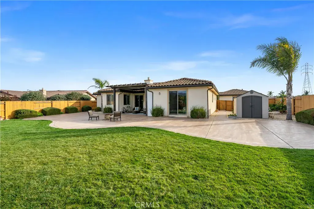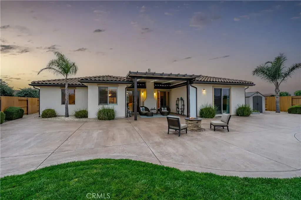 Multi-generational living or income producing opportunity in the exclusive Enclave at Costa Pacifica community, which is perfectly positioned to enjoy the natural beauty of the Nipomo Mesa and the special lifestyle the Central Coast offers. Situated on an elegantly landscaped, nearly one-half acre parcel, this single level residence features a versatile layout with nearly 2,800 square feet of living space, four spacious bedrooms, four luxuriously appointed baths, and a detached one bedroom and one bath guest house. The home features upscale finishes like voluminous ceilings, smooth trowel-finished walls, and 8′ interior doors, along with approximately $85,000 in upgrades, including plantation shutters, since its construction in 2016. A comfortable space to unwind after a day of wine tasting in Santa Maria Valley or relaxing at Pismo Beach, the living room includes a cozy fireplace with a concrete mantel/hearth, and dual sliding doors. The heart of the home, the kitchen, is an entertainer’s dream. An expansive island with bar seating, pendant lights, and granite counters with a stone backsplash makes it both functional and stylish. Further enhancing the space is premium cabinetry with soft-close doors/drawers, stainless steel appliances with an included refrigerator and hood vent, a sunny breakfast nook, and an adjacent dining room. The owner’s suite, a private upscale retreat, offers a spacious walk-in closet, rear patio access, and en-suite bath featuring dual sinks, tiled counters, soaking tub, and a walk-in shower with a frameless glass enclosure. Three secondary bedrooms in the main residence, including one with an en-suite bath, provides plenty of room for guests, and offers flexible uses including a home office or fitness space. The one-bedroom detached casita features a living room, kitchenette, washer/dryer, and a large private patio. The outdoor spaces complete the elevated experience this property offers. An expansive stamped concrete patio, lush park-like setting with lawn, pepper and olive trees, and landscape lighting set the stage for relaxation. The backyard features a firepit, flagstone walkways, garden area with fruit trees, stained fencing, and patio cover with skylights-perfect for hosting BBQs while soaking in mountain and sunset views. Additional highlights include a three-car garage, laundry room with sink and included washer/dryer, storage shed on concrete pad, tankless water heater, owned solar system, and a water softener.