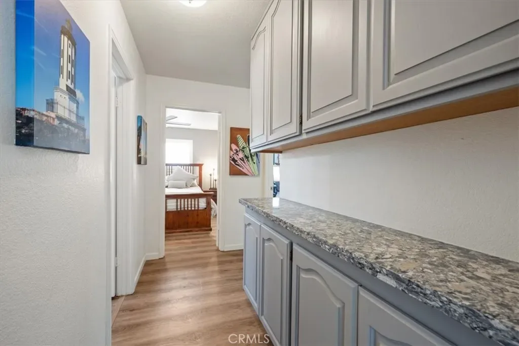 Recent upgrades include luxury vinyl plank flooring throughout, complemented by beautiful tile in the kitchen. The kitchen itself is warm and functional, featuring a charming dining nook and a newly added coffee center with convenient pull-out trash and recycling.