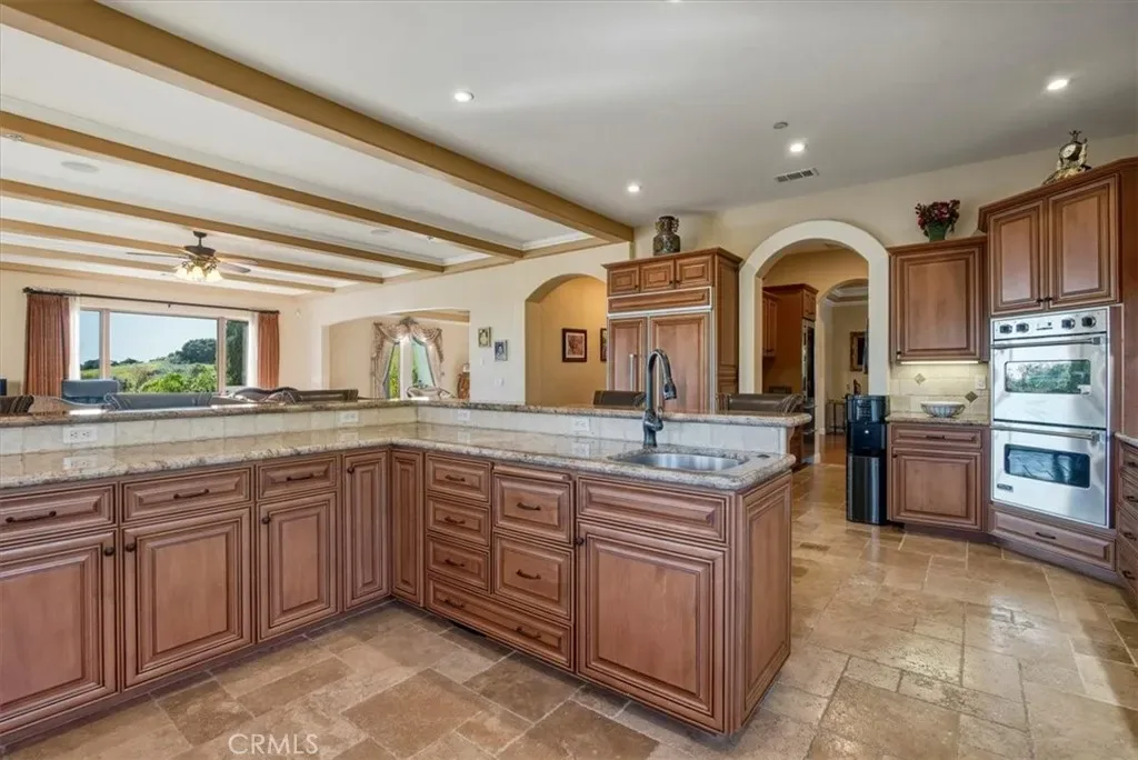 A Mediterranean Estate of Distinction. Set behind the gates of the prestigious Rancho Nipomo community, 775 Riata Lane is a refined Mediterranean estate where timeless architecture, privacy, and modern luxury converge. Approached by a stately palm-lined driveway, the property immediately impresses with its sense of arrival, expansive grounds, and meticulously designed landscape accented by outdoor lighting throughout, creating a warm and dramatic ambiance from day to night. The residence spans approximately 5736 square feet, offering four bedrooms and five bathrooms, including two elegant primary suites—each a private retreat complete with walk-in closets and beautifully appointed ensuite baths. Designed with scale and flow in mind, the home balances grand entertaining spaces with intimate areas for everyday living. At the heart of the home, the chef’s kitchen is both functional and striking, featuring Viking appliances, a generous wraparound bar, and ample space for gathering. The Wine Bar features a Sub-Zero Wine Refrigerator and two refrigerator drawers—perfect for hosting celebrations or casual evenings with family and friends. Expansive living areas open seamlessly to the outdoors, inviting sunset views, open-air entertaining, and a true indoor-outdoor lifestyle. Modern convenience is woven throughout the home with integrated smart-home technology, allowing effortless control of lighting, property access, and music. Whether hosting guests or enjoying quiet evenings at home, the environment adapts seamlessly to every occasion. Surrounded by lush, thoughtfully designed landscaping and positioned to maximize privacy, this estate offers a rare sense of tranquility within a secure, gated setting. Every detail reflects an intentional approach to luxury—one that prioritizes comfort, beauty, and livability—enhanced by an owned solar system with two solar batteries, offering exceptional energy efficiency and peace of mind for daily living. 775 Riata Lane is more than a residence—it is an elevated lifestyle within one of Nipomo’s most exclusive enclaves.