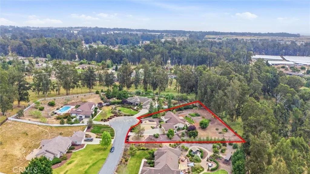 Rare single-level opportunity in Knollwood Estates, one of Nipomo’s most sought-after enclaves — where homes rarely become available. Set on a private cul-de-sac backing up to open space and a natural eucalyptus grove, this 4-bedroom, 3-bath, 2,557 sqft home sits on just over an acre of flat, usable land with privacy that’s hard to come by on the Central Coast. Arched architecture and custom art niches carry throughout the interior, complemented by tall ceilings and a layout designed for effortless single-level living. The kitchen anchors the home with double ovens, a walk-in pantry, custom countertops, and bar seating open to the dining area, living room, and backyard. A separate front flex space works equally well as a formal dining room or secondary living area. The primary suite occupies its own wing, featuring a jetted tub, separate shower, dual sinks, walk-in closet, and direct backyard access. A second bedroom in the same wing is served by a nearby ¾ bath. On the opposite end, two additional bedrooms connect through a Hollywood-style shared bathroom with dual sinks. Outside, enjoy a paver patio with covered trellis dining area overlooking a fully fenced backyard featuring an outdoor firepit, drought-tolerant landscaping, fountain, and direct trail access. The generous lot invites future possibilities — pool, workshop, or expanded outdoor living. A finished 3-car garage and dedicated laundry room with sink and storage complete the package. Minutes to multiple golf courses, acclaimed wineries, coastal dining, and Highway 101. Information deemed reliable but not guaranteed.