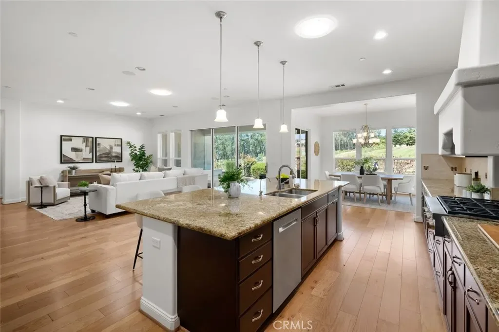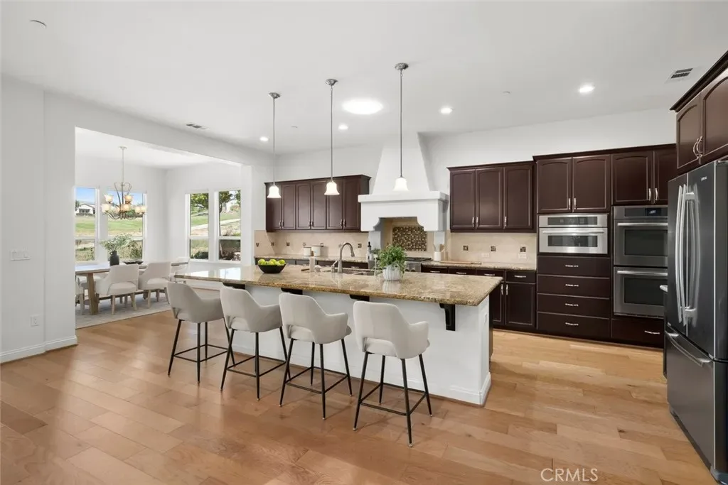 At the heart of the home is the open-concept great room, kitchen, and dining area, creating a welcoming central gathering space filled with natural light and framed by scenic views. Whether hosting friends or enjoying a quiet evening at home, the seamless flow makes everyday living and entertaining a pleasure.