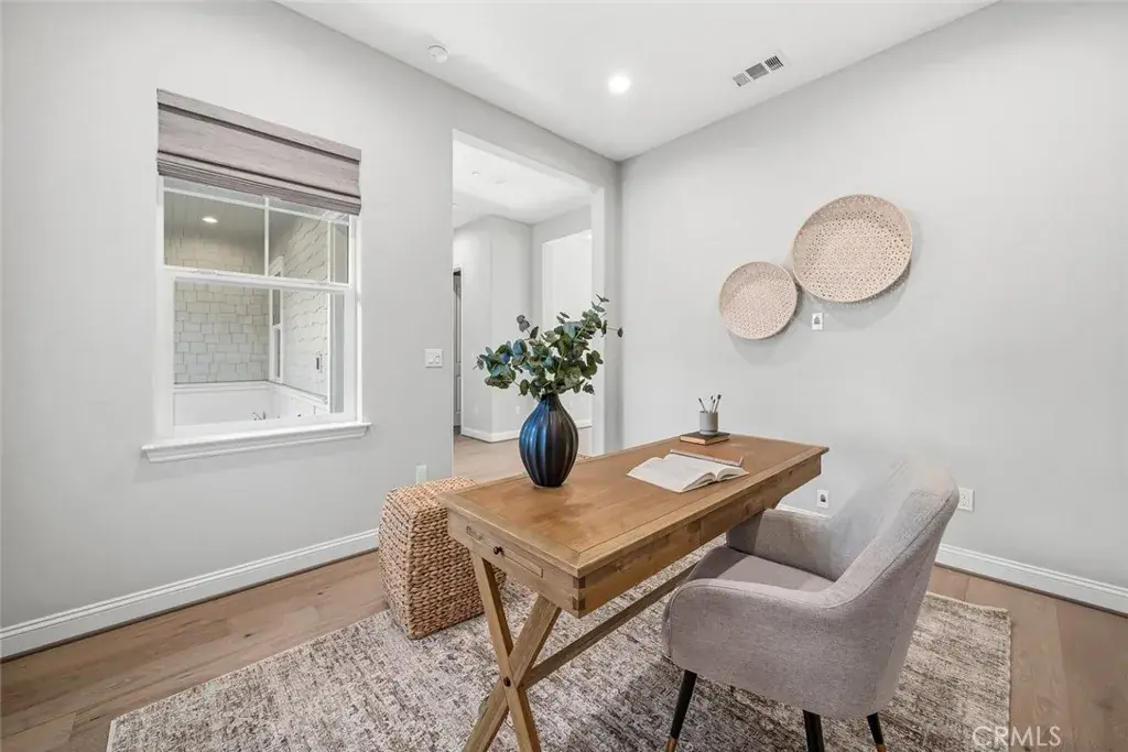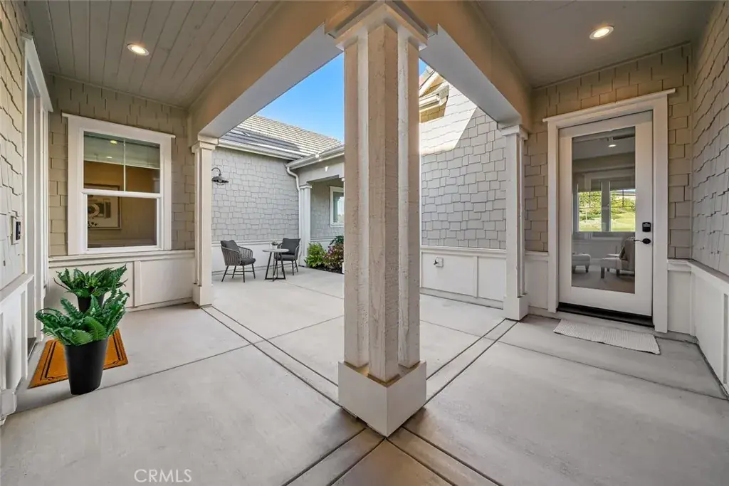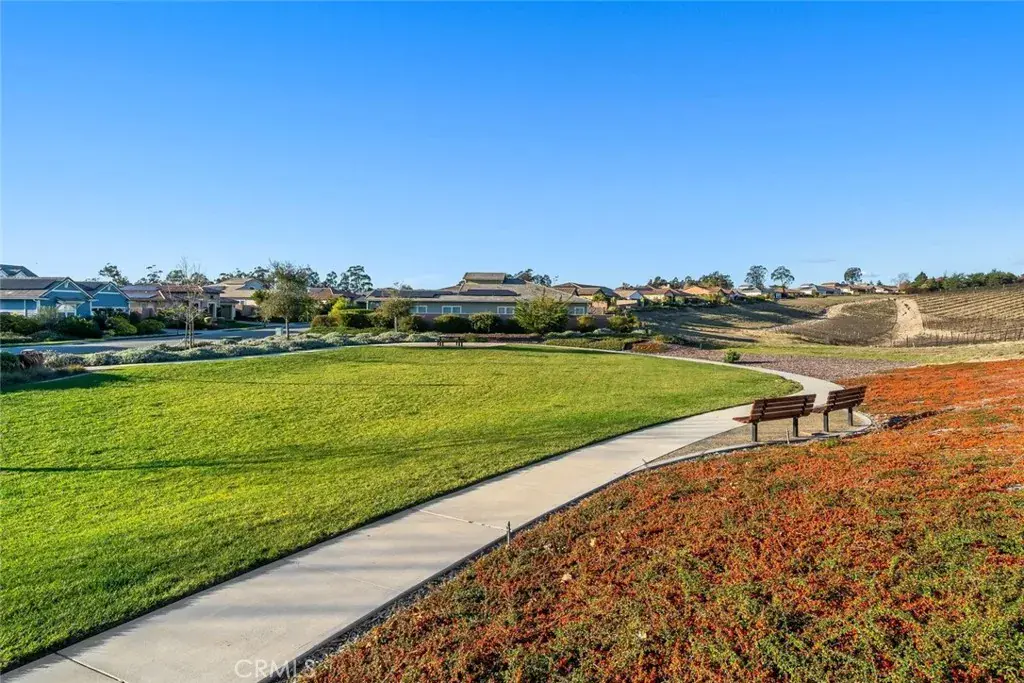 This elegant, coastal cottage-style home enjoys one of the most coveted settings—framed by open space on three sides, with an expansive park and vineyard just across the way and sweeping views of distant dunes and tree-lined horizons behind. A generous entry courtyard sitting area creates an immediate sense of welcome, leading into 2,696 sq ft of refined, open-concept living. Inside, desirable white oak hardwood floors set an elegant yet relaxed tone, guiding you into the light-filled living and dining spaces. The gourmet kitchen takes center stage with soft-close shaker cabinetry, quartz countertops, double-oven, an oversized island, and a walk-in pantry complete with a 50-bottle wine fridge. A well-designed “Smart Space” utility room offers laundry and a built-in office with desk area to further enhance your everyday comfort. Enjoy the restful, primary suite featuring a spa-inspired bath with stone-slab counters, double vanity, walk-in shower and a spacious walk-in closet. Beyond the main living areas, an oversized, air-conditioned guest casita awaits—accessible through its own private entrance and appointed with a generous sitting area, bedroom, and en-suite bath. Perfect for visiting friends, in-laws, creative pursuits, or simply curling up with a good book, this wonderfully flexible space enhances the home’s livability and offers endless possibilities. An expansive covered patio and outdoor fireplace invite year-round enjoyment of the tranquil backyard and scenic vistas. The home’s thoughtful design also includes a 3-car garage, whole-house water filtration, keyless entry door, garage cabinetry, included washer, dryer and refrigerator and solar energy. The result is a sanctuary where thoughtful design and breathtaking surroundings come together in perfect harmony.