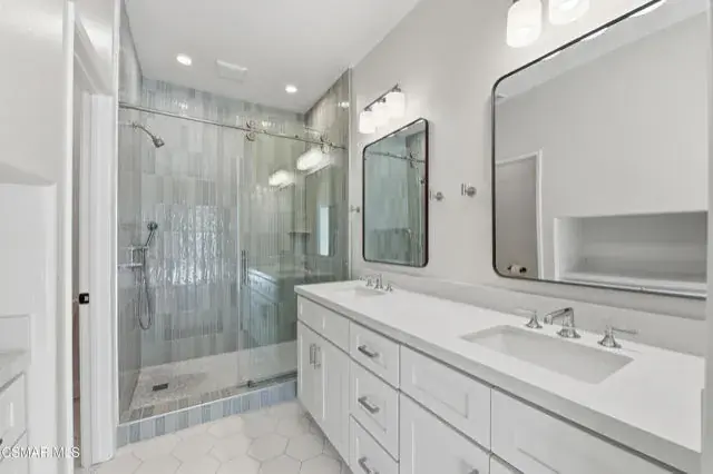 Open house 10/25/25 10:00AAM – 11:30AMStep into this extensively renovated and highly sought-after Capri 2 townhome, located in one of Oak Park’s most desirable resort-style communities, where comfort, style, and convenience come together in a thoughtfully designed space. The fully remodeled interior welcomes you with vaulted ceilings, abundant natural light, and a bright, open-concept layout that seamlessly connects the living and dining areas, all highlighted by a cozy gas fireplace that adds warmth and character. The home features a combination of new tile and wood-like laminate flooring for a clean, modern aesthetic. The completely renovated kitchen is a standout, showcasing new custom white shaker cabinetry, quartz countertops, a cheerful breakfast nook, and all brand-new stainless-steel appliances, including a refrigerator, stove, in-drawer microwave, and high-end Bosch dishwasher. Offering exceptional flexibility, this home features two spacious primary en-suite bedrooms–one conveniently located downstairs and one upstairs–each with fully remodeled, all-tile bathrooms featuring custom shaker-style vanities, mirrored wardrobe closets, and ample storage. The 2025-installed HVAC system includes a Bosch air conditioning unit to ensure year-round comfort, while new modern lighting with dimmers, washer, and dryer hookups, and updated front door locks add convenience and peace of mind. The private attached two-car garage features a brand-new motor with a backup battery, also installed in 2025. Outdoors, enjoy a gated backyard patio ideal for entertaining or quiet evenings, adjacent to a grassy common area that enhances the sense of open space and privacy. Just minutes from hiking trails, neighborhood parks, and Oak Park’s top award-winning schools. Don’t miss your chance to make this stunning home yours.
