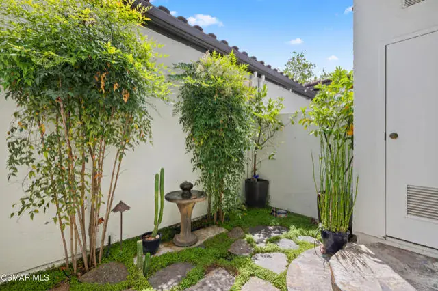 Light & cheerful end-unit featured on HGTV’s House Hunters! This Oak Park 2+2.5 townhome with private courtyard and attached garage feels more like a house. Beautiful parks and hiking trails are right outside your door, with Deerhill Park only a mile away. Living room has a cozy fireplace and lots of windows. White & bright kitchen with sliders that open to a peaceful enclosed garden featuring citrus trees, outdoor lighting, flagstone pavers and water feature. Upstairs are two separate primary bedrooms both with new carpeting, ceiling fans, walk-in closets, and en-suite full baths. Washer & Dryer are conveniently located in the 1-car attached garage with extra storage space. There is also a reserved carport space next to the garage. Quiet and lovely ”Shadow Oaks” community offers a pool, jacuzzi, clubhouse and gym. Close to highly sought after schools, Agoura Hills, and Westlake Village.