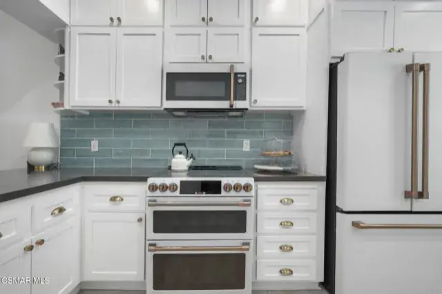 Elegantly updated in 2023, this timeless home features the following: Wide plank performance grade flooring throughout (AC6 durability rated for high traffic areas, kids, and pets!), updated dream kitchen which includes soft close cabinets/drawers, quartz countertops, chef worthy cafe line appliances with accent champagne bronze hardware finishes, oak floating shelves, polished ceramic backsplash tile, Moen sensor touch less faucet and deep under mounted kitchen sink. Directly off this designer kitchen boasts a lovely open concept dining area, living room, charming fireplace, elaborate high ceilings, recess lighting throughout, and a gorgeous, updated half bath off the main living room for your guests. Arrive at the second floor where you can find two bedrooms each with their own en suite bathrooms and custom walk-in closets. To your right walk into a vibrant primary suite equipped with large sliding glass doors that open to a private patio and nature. Enjoy a cup of coffee or a nighttime beverage while immersing yourself In all nature has to offer. Step back inside and enjoy on suite bathroom amenities featuring modern sleek vanity, champagne bronze fixtures, honed herringbone marble floors, custom shower glass doors, and a custom walk-in floor to ceiling honed marble shower that makes your private oasis feel like an exclusive luxury spa. Encompass yourself in floor to ceiling marble and enjoy the delta vero rainfall shower experience. Step outside your personal spa and enter into your custom walk-in closet featuring soft close drawers, shoe storage, bag storage, and ample clothing space. To the left of the second story landing boasts a stunning second bedroom which can be transformed for guests, office space, or a nursery. En suite second bedroom bath includes modern vanity, marble flooring, deep soaker tub, ceramic tile, delta Vero shower fixtures, and custom shower glass doors. Step outside this spa like experience and enter the second walk in closet of the house featuring soft close drawers, shoe shelving, and ample clothing space. Additional highlights include a one-car garage, smart home features and access to a community gym/exercise room for your daily workouts. For outdoor enthusiasts, enjoy the nearby hiking and biking trails, perfect for taking in the surrounding natural beauty.Centrally located between Westlake Village, Agoura, Calabasas and highly sought after school districts!