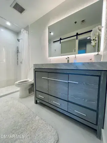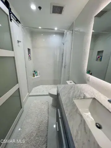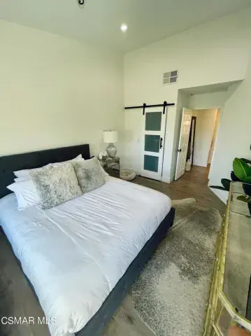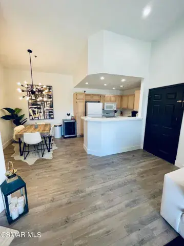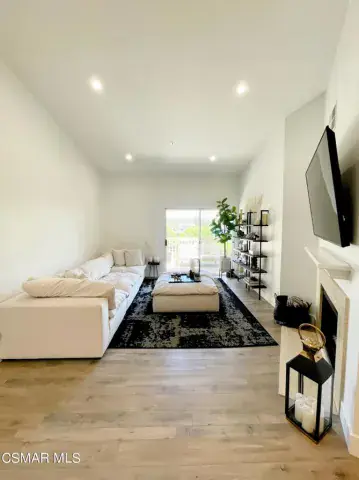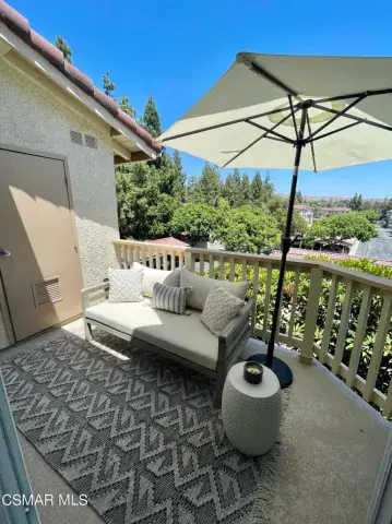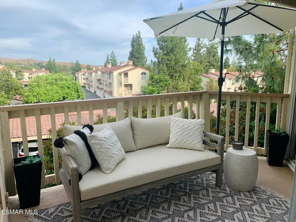 Welcome to this beautifully remodeled (just in 2019) open floor plan condo, located on the top floor offering an abundance of great natural lighting as well as the gorgeous mountainside view. Upon entry you are greeted with neutral, plank flooring, recessed lighting, high 20ft+ ceilings and smooth ceilings create a nice sense of space. The one bedroom suite features a large walk-in closet with organizers and slider access to the patio where you can unwind and take in the lush green scenery. The bathroom has been completely gutted and remodeled and features a large stall shower, marble stone topped vanity, an LED backlit vanity mirror and a chic barn door closure. The fireplace also has been updated for a fresh, modern look. You’ll be hard pressed to find a better location than this. The balcony floor and railing were redone by the HOA in 2021. The spacious balcony also features a storage closet with washer and dryer. Internet and cable are included along with a Nest smart thermostat and Nest camera doorbell that can be controlled with the Nest app. Shadow Ridge is located close to Oak Park schools, hiking trails and a dog park. Take advantage of the incredible resort-like amenities included with this stunning community. Enjoy the private lush walkways, or a game of volleyball, tennis or basketball on the sport courts. Gym amenities also included. Bask in that So Cal sunshine too at either of the 2 community pools and spas. Includes one deeded covered parking spot plus additional guest parking.