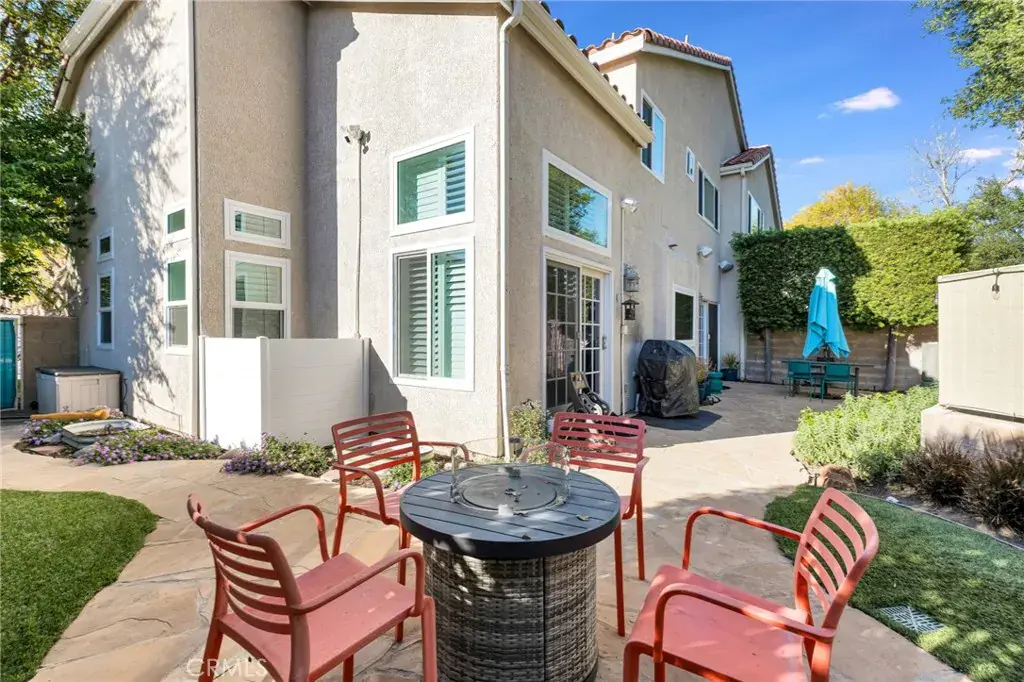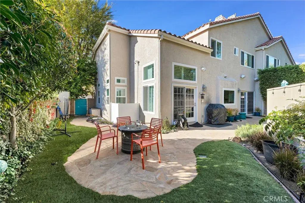 Located in the sought-after Canyon Cove neighborhood and served by the top-ranked Oak Park School District, this exceptional home offers a rare blend of comfort, style, and nature. The property backs to a serene arroyo filled with majestic oak trees, a walking path, and a seasonal stream—creating a peaceful, private setting with the true feeling of being immersed in nature. The home has been thoughtfully upgraded with meticulous attention to detail. Upon entry, you’re welcomed by vaulted ceilings in the living and dining areas, complemented by abundant windows that flood the space with natural light. Ceramic tile wood-like flooring provides both beauty and durability throughout the main living areas. The kitchen features granite countertops, a gas range, and picturesque views of the backyard. Adjacent to the kitchen are a cozy breakfast area and a den, ideal for everyday living or casual gatherings. The first floor also includes a downstairs bedroom or office, a full bathroom, and a dedicated laundry room. Upstairs, the spacious primary suite offers high ceilings, a sitting area, and a walk-in closet. The en-suite bathroom boasts a large soaking tub, a separate shower with rainfall shower head, and a dual-sink vanity. Two additional bedrooms and a third full bathroom complete the upper level. The beautifully manicured backyard is perfect for entertaining or simply enjoying the tranquil natural surroundings. Additional features include a two-car garage, newer windows and shutters, PAID OFF Solar with electric car charger – adding efficiency and value to this remarkable home, as well as a community pool and spa.