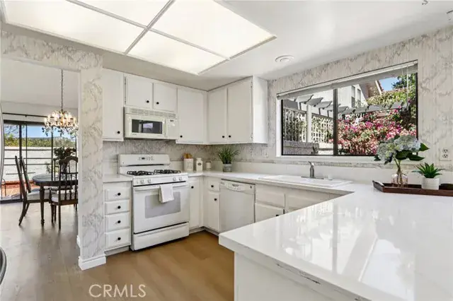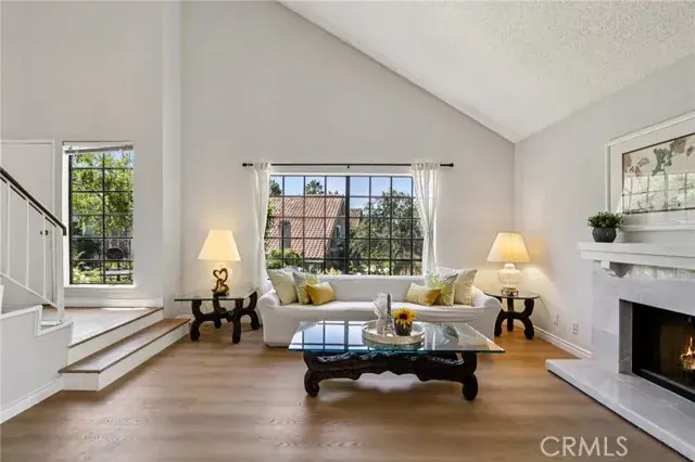 New luxury vinyl flooring throughout the main level and stairs. Living Room features vaulted ceilings and a marble-faced fireplace. Updated Kitchen with brand-new quartz countertops, and freshly painted cabinetry, opens to a cozy Family Room and breakfast nook.