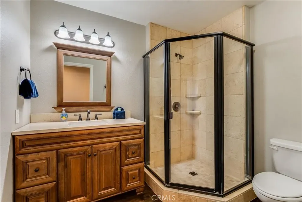 The main entry level features one level living consisting of a primary bedroom, two bathrooms, a full kitchen, dining room, and living room, creating a comfortable and private living space with convenient access to the garages. The upstairs level offers three bedrooms, two bathrooms, a second kitchen, and a living room. With separate living areas and kitchens on each level, the home can function independently if desired—perfect for multigenerational living, guest quarters, or extended family stays.