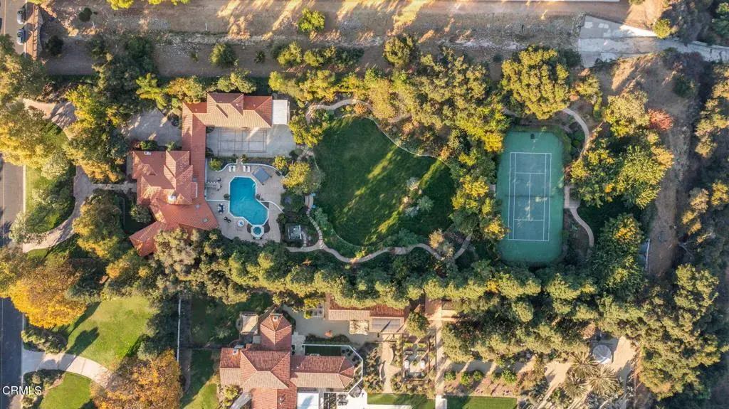 Welcome to your personal utopia, nestled in the exclusive gated community of Rancho Matilija in the beautiful Ojai Valley. This property offers a private sanctuary of absolute bliss. Experience the famous ”pink moment” sunsets from your custom estate. The main house features beautifully appointed rooms with exaggerated ceilings, three fireplaces (gas or wood burning), and elegant hardwood flooring. The layout is perfectly designed for entertaining, privacy, and warmth. Multiple living spaces and dining areas–both open and intimate–create a perfect harmony of elegance and function. A natural romance and ambiance flows through each beautiful space, both large and small, indoors and out. A separate guest house with stunning views includes a recreation room below, adding another layer of luxury. Enjoy the tennis and pickleball courts, as well as the private hiking trails. A private well sustains lush gardens and an organic orchard with apples, lemons, peaches, plums, persimmons, avocados, blackberries, and more! The additional outdoor amenities are equally impressive: a recently renovated pool, jacuzzi, sauna, outdoor kitchen, and charming paved walkways that wind through this dreamy compound. Cozy, built-in seating surrounds the fire pit, and an enchanting, covered gazebo draped in wisteria elevates the senses. Serenity at your fingertips. This property has all the hallmarks of a boutique resort, offering a unique blend of ambiance, character, and one-of-a-kind luxury living.