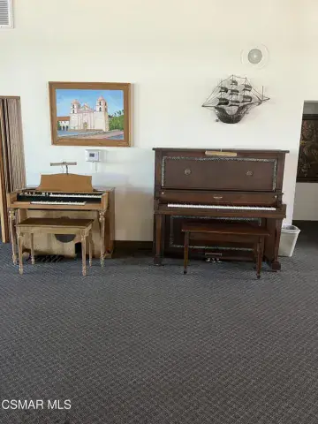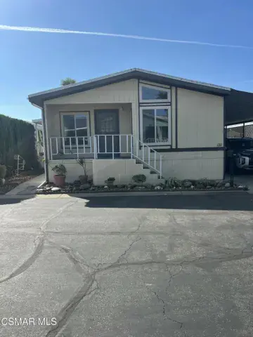 Located in the Ojai Villa Estates (55+) Park, towards the center of the park with easy access to the clubhouse and bike trail. The living room has vaulted ceilings. Newer appliances and flooring in the kitchen with dual-pane windows throughout. The primary bedroom has a very large closet with an attached bathroom. From the front porch, there are beautiful mountain views. This park requires buyer approval prior to purchase.