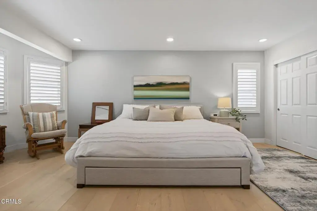 Beach is this way! This beautifully updated Mandalay Beach home offers effortless coastal living in a boutique complex of only 10 residences. As a desirable end-unit condo, it’s ideal as a full-time coastal retreat, a weekend escape, or a low-maintenance second home, just steps from the sand! With a spacious 1,500 square feet, the light-filled, open floor plan features two private primary suites – one on each level – perfect for hosting guests, multi-gen living, or work-from-home flexibility. The upstairs living area is inviting with vaulted ceilings, custom plantation shutters, a newer gorgeous fireplace heating unit, and two private balconies to enjoy the ocean air. The updated kitchen showcases custom cabinetry, stainless steel appliances, granite countertops, recessed lighting, and heated floors. A generous dining area provides flexibility for everyday living or entertaining while a built-in office nook adds practical functionality. Both primary suites feature beautifully remodeled bathrooms. The upstairs suite includes triple closets, wide custom barn doors which allow the space to function as a secondary living area if desired, an oversized soaking tub, and a sleek European-style shower door. The downstairs suite features two large closets, custom tile shower with rock inlay, and convenient access to the laundry area and garage. Additional highlights include newer windows, a two-car garage with abundant storage and workbench, and an exterior hot shower – a true coastal luxury after a day at the beach! Low HOA dues and easy lock-and-leave convenience complete the package. An exceptional opportunity for buyers seeking a stress-free way to own a slice of the California coast and enjoy relaxed beach living just moments from the soothing sound of the ocean waves.