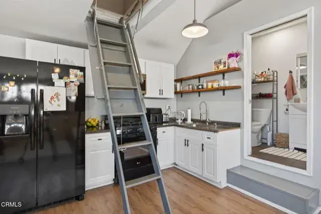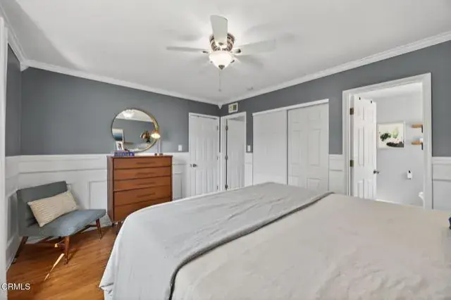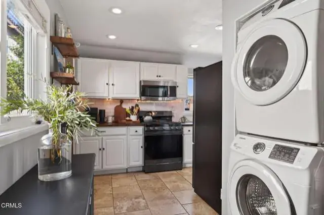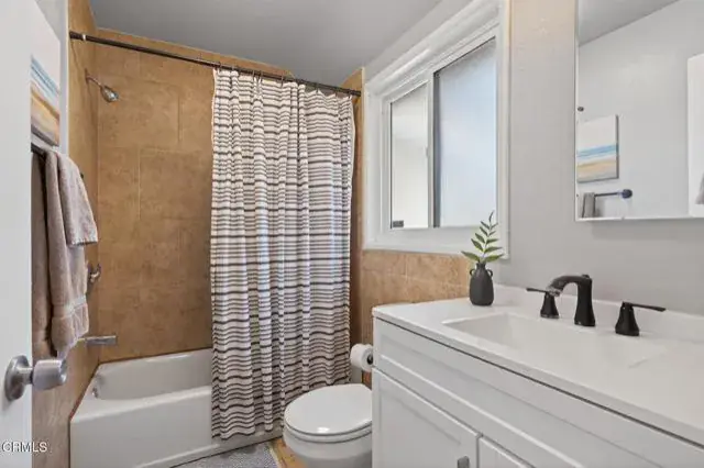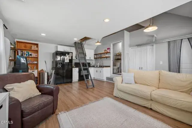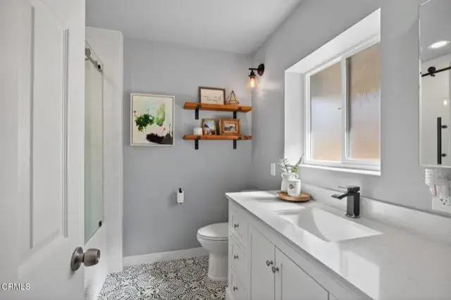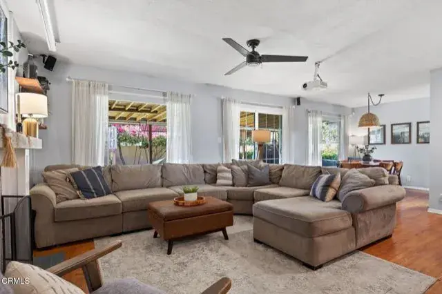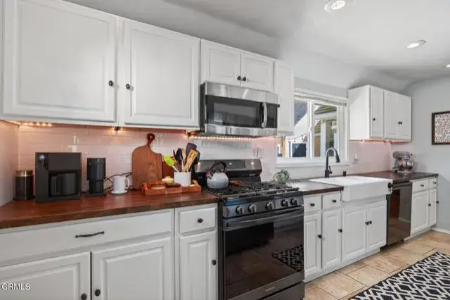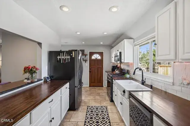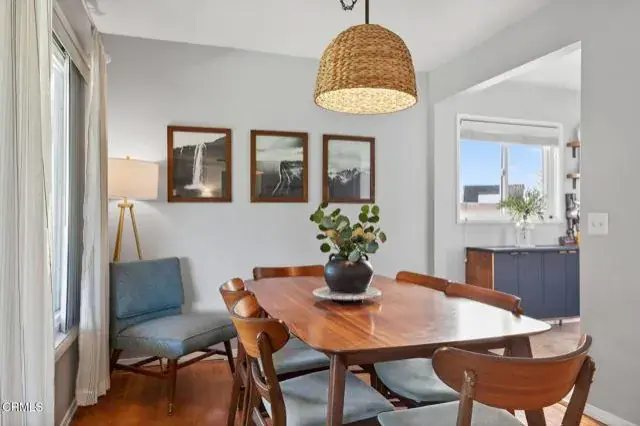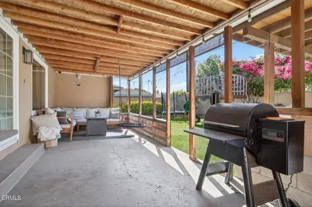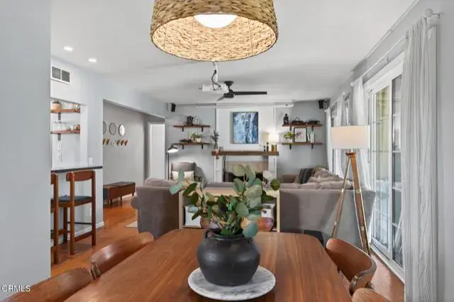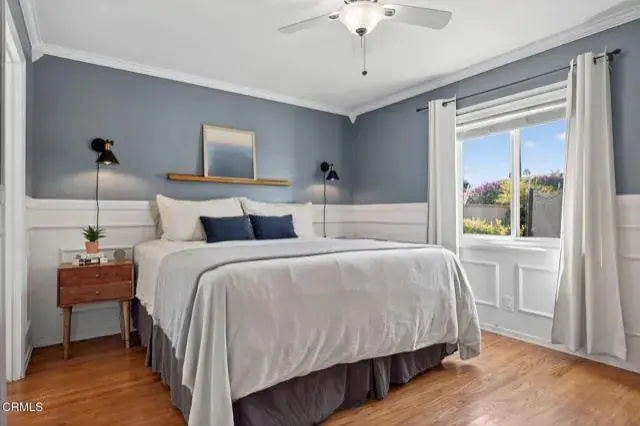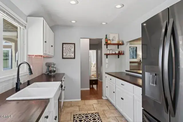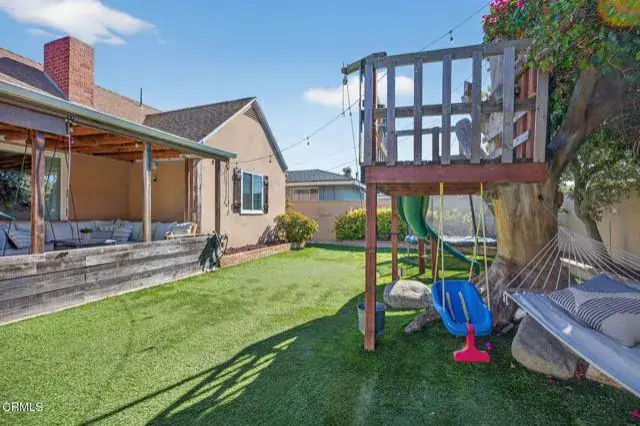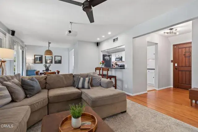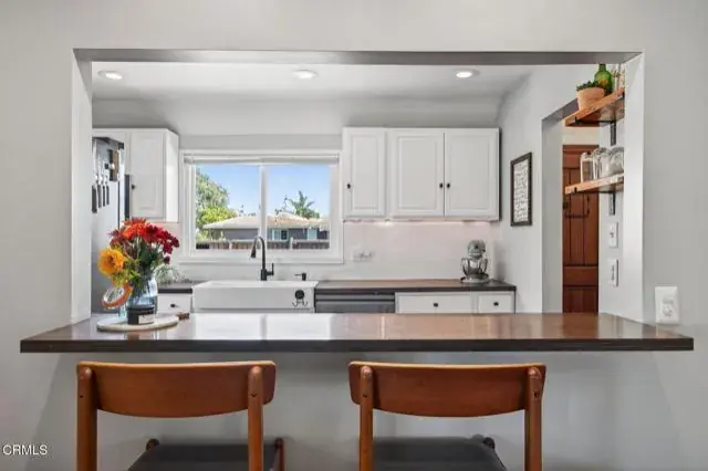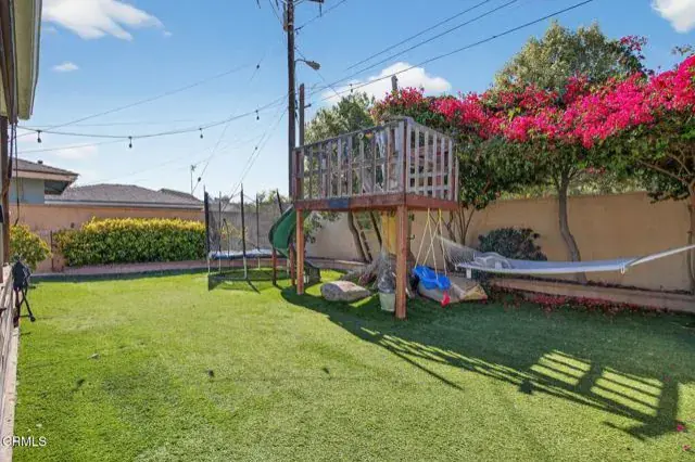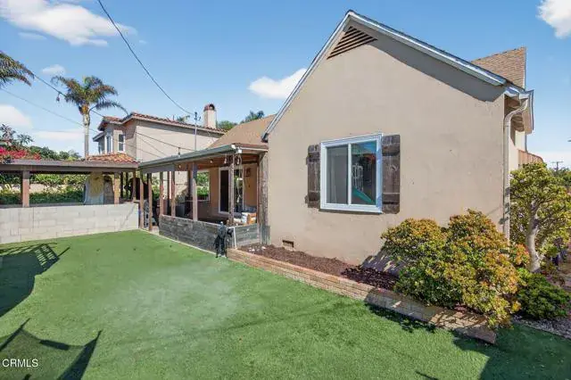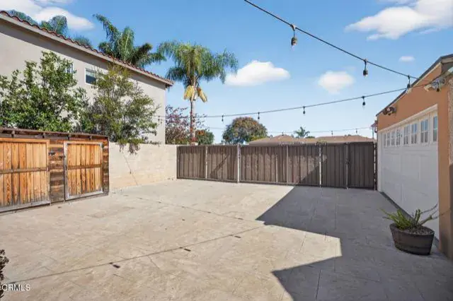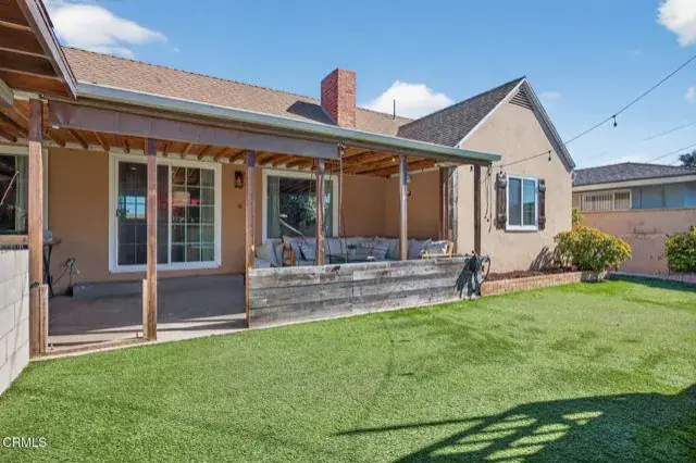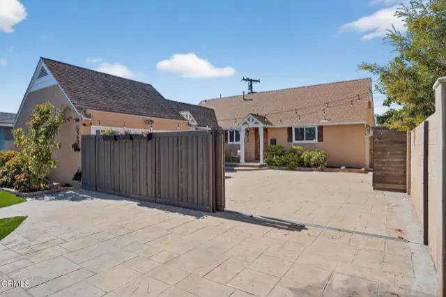Tucked behind a private gated courtyard in North Oxnard, this beautifully refreshed 3 bedroom, 2 bath ranch-style home offers stunning & modern upgrades while preserving the timeless characteristics of its mid-century era. The residence welcomes you inside with original hardwood flooring, undeniable charm, and an open family-friendly floorplan. The upgraded kitchen is complete with newer appliances, modern butcher block countertops, views of the front courtyard, and a spacious counter bar that opens to the living and dining areas- perfectly designed for connection and gathering with family and friends. Large glass sliders invite you outdoors to the private covered patio and backyard–an ideal setting for evening barbecues, hosting family, and endless outdoor fun. Down the hall are three well-sized bedrooms, including a large guest bath and primary retreat with newly renovated ensuite bathroom featuring a glass enclosed shower with soaking tub, large vanity, all new fixtures, and designer tile flooring. The expansive gated courtyard serves as an outdoor extension of the home–perfect for entertaining, lounging, or a safe play area for kids. Don’t miss the converted garage studio with kitchenette & full bath, a versatile bonus space ideal for guests, multi-generational living, or potential rental income. With stone-core wood like flooring and a functional garage door, it conveniently doubles as either an elevated living space, or 2-car garage.Additional highlights include newer tankless water heater, upgraded electric panel, inside stackable laundry, smart home features, owned water softener, dual paned windows and recessed lighting.Ideally located near schools, parks, shopping, and just minutes to Oxnard’s beautiful beaches, this home offers both comfort and connection for everyday family life. Discover the perfect place to put down roots and make lasting memories in the heart of Oxnard.