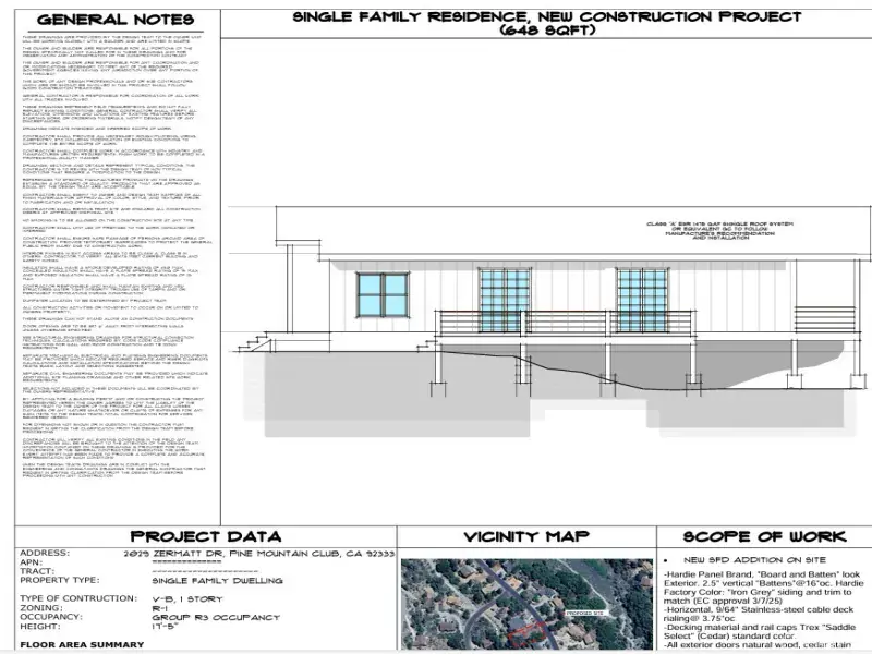 There are complete architectural and engineered plans for a 720 square foot, craftsman style house that can be included. The plans have already been Reviewed by the HOA (the Environmental Committee {EC} in Pine Mountain Club) and have been engineered, stamped and ready to submit to Kern County. Complete build-out specs for cost are available!
