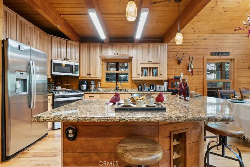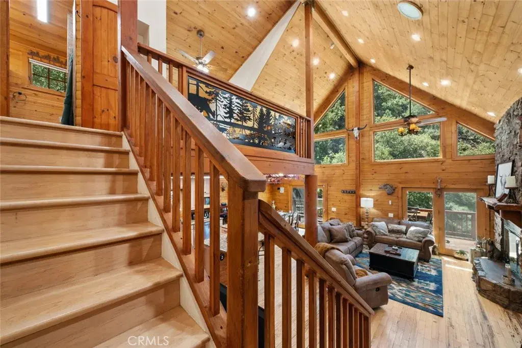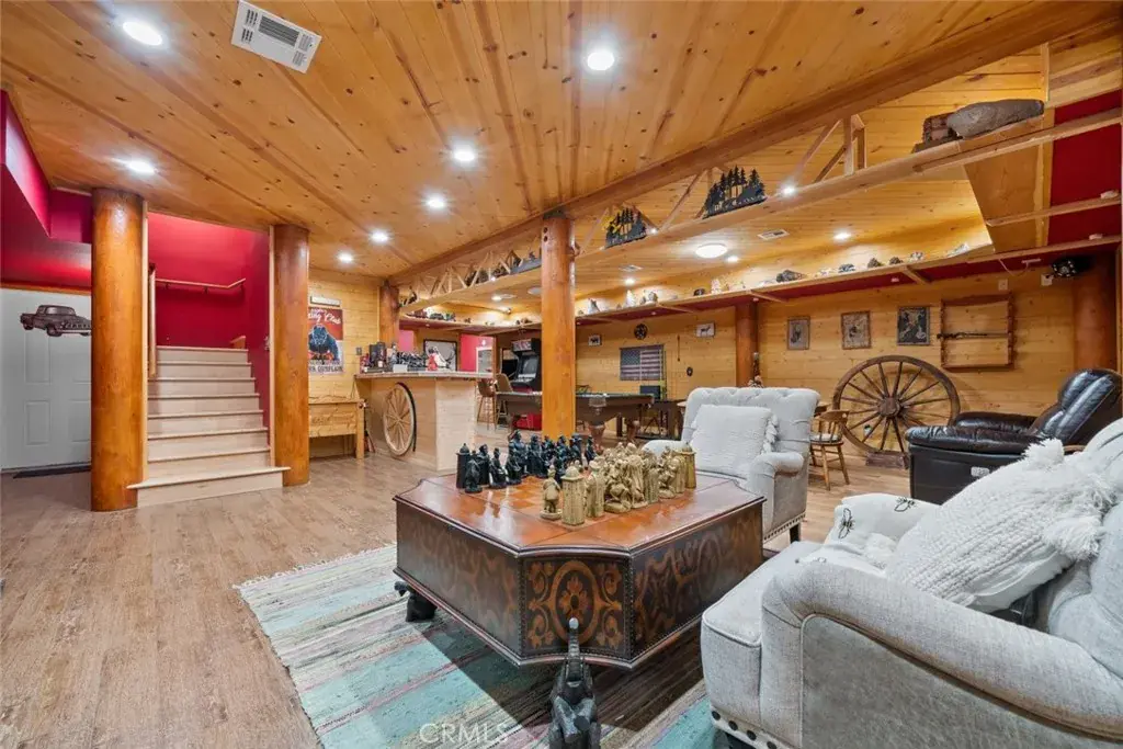 Welcome to 1613 Freeman Dr, nestled in the charming city of Pine Mountain Club. This vibrant community boasts a wide range of amenities including a pool and spa, Pickleball courts, barbecue areas, picnic spots, playgrounds, dog parks, a golf course, tennis courts, biking and hiking trails, horse trails, a clubhouse with banquet and meeting facilities, a recreation room, common RV parking, and security services. The cabin-style residence features two stories showcasing mountain beauty. A spacious driveway with RV parking provides ample parking space. There is also an EV charger. The home’s wraparound balcony offers stunning views of the surrounding landscape. Inside, the family room is bright and inviting, with plenty of natural light, a cozy fireplace, and a dining area. The kitchen is well-equipped with essential appliances, including a gas stovetop, oven, microwave, and dishwasher, plus a kitchen island with bar seating. The main floor includes a bathroom with a walk-in shower and two bedrooms, each with a free-standing fireplace. Upstairs, you’ll find a versatile loft space that can be transformed into an additional sleeping area, along with a bedroom that features access to a private balcony. A bonus room serves as another living area and has been converted into an extra bedroom. For recreation, the home includes a spacious game room with chess, billiards, and arcade games, as well as a large laundry room. The additional bathrooms feature shower-in-tub setups. The entire home offers central air conditioning and heating. Don’t miss out on this cabin dream home, complete with a sauna and breathtaking mountain views from the balcony!