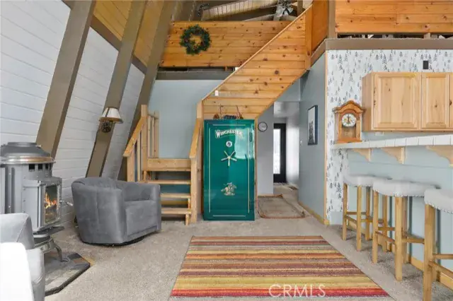 Step inside and you’ll find warm wood tones, vaulted ceilings, and that unmistakable cabin scent of pine and earth. The open living area centers around a pellet stove—perfect for slow mornings or nights when the wind moves through the trees outside. Two bedrooms and a full bath sit on the main level, while upstairs, a spacious loft waits to become whatever you need it to be: a writer’s hideaway, a second living space, or a place for guests to stretch out after a long hike.