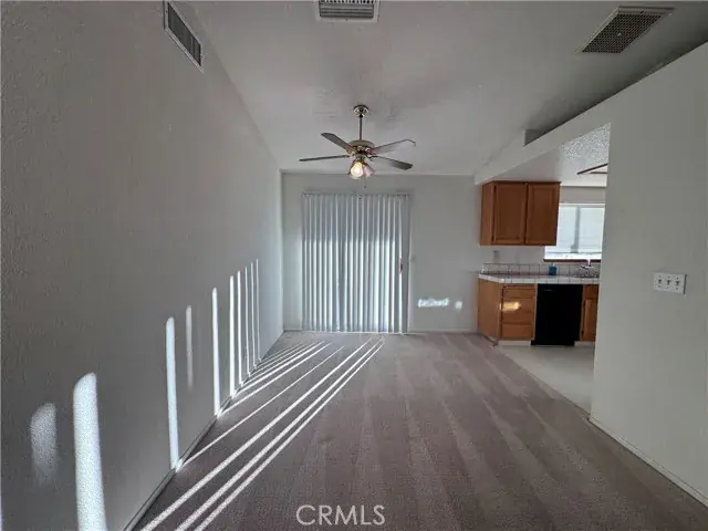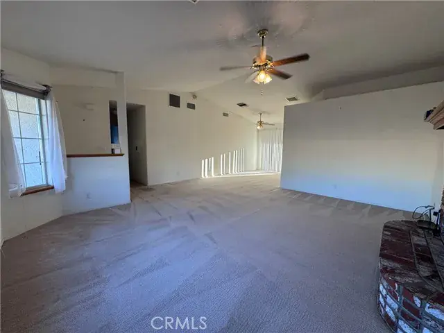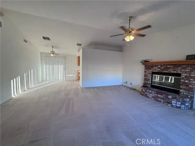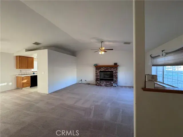 Welcome home to an easy-living 3 bed / 2 bath in southwest Ridgecrest—ideal for first-time buyers, NAWS China Lake transfers, or anyone wanting a clean, comfortable home with room to grow. Step into a bright living room featuring a wide picture window, ceiling fan, and a classic brick fireplace that anchors the entire space. The open dining area sits just off the living room and connects directly to the backyard through a sliding glass door, making indoor/outdoor living effortless year-round.