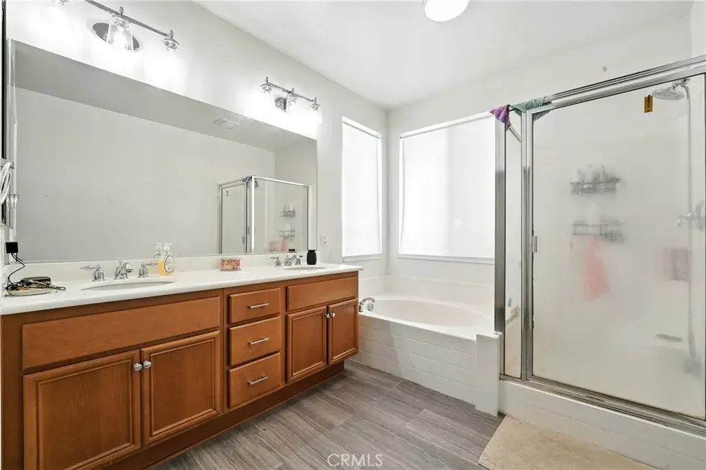 Beautifully updated 2007-built home offering over 2,000 sq. ft. of living space on an 8,700+ sq. ft. lot. Features include a remodeled kitchen, updated flooring, fresh paint, modern fixtures, and a recently renovated attic. The open floor plan provides a bright and functional layout, highlighted by spacious bedrooms and updated bathrooms with double-sink vanities. The primary suite includes a soaking tub and separate shower for added comfort.