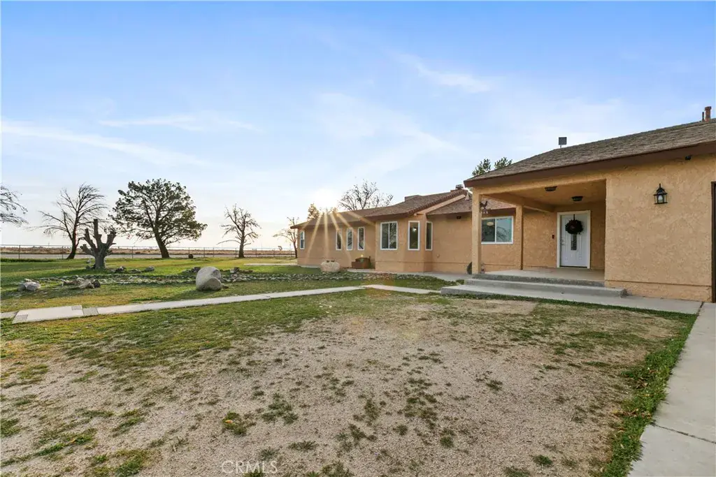 Don’t miss this gorgeous 3-bedroom, 2-bath home offering 2,360 sq. ft. of living space on a sprawling 2.5-acre lot in Rosamond. The property features two separate two-car garages plus an impressive 40′ x 30′ barn/workshop with a 9-foot automatic garage door. Wood flooring enhances the kitchen, two spacious living rooms, and one bedroom currently used as an office. The kitchen boasts abundant cabinetry, granite countertops, and stainless steel appliances. Both bathrooms feature granite countertops and tile flooring. Step outside to a beautiful covered patio, perfect for relaxing on warm summer evenings. The expansive lot is fully fenced, completely usable, and ideal for a variety of needs. The barn includes its own sub-panel, lighting, and 220V outlets. The owned propane tank and recently pumped and inspected septic system add peace of mind. This exceptional property won’t last—schedule your showing today.