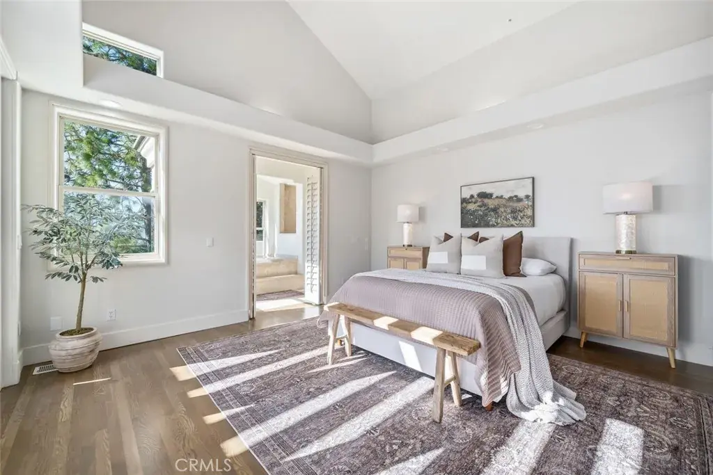 A rebuilt grand staircase, cathedral ceilings, and eight-foot doors introduce a sense of timeless simplicity and calm. Expansive windows frame 180° vistas of rolling hills and city lights, while French doors throughout the home create an easy indoor-outdoor rhythm suited to gatherings, family life, or peaceful evenings at home.