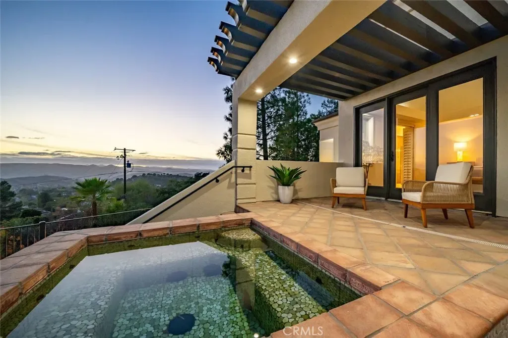 The southwest-facing pool and spa capture golden hour beautifully — whether hosting at sunset or unwinding under the city lights.