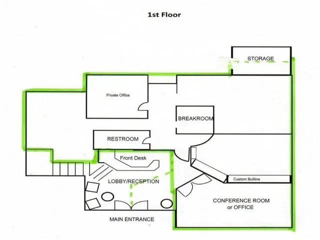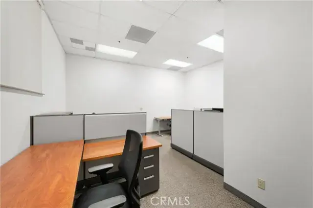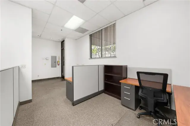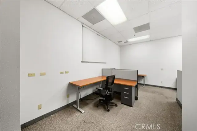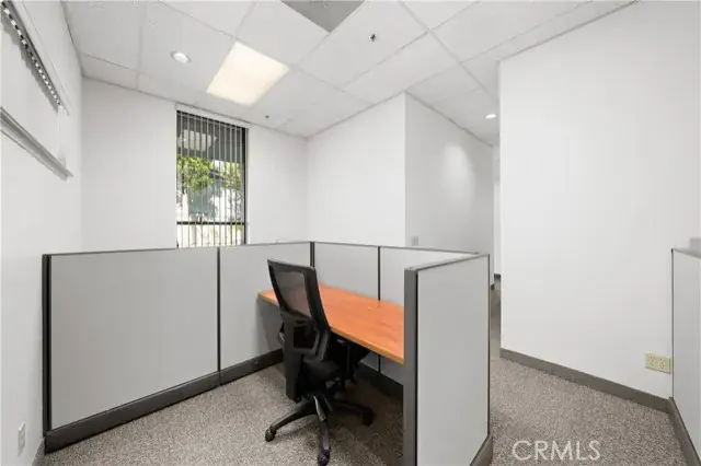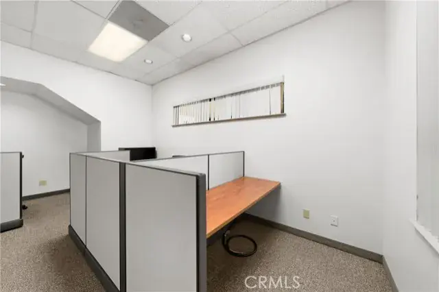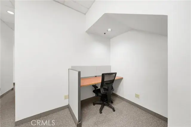 A ground floor office suite with on-site parking, a private office, open work spaces, a kitchenette, and a conference room. Excellent freeway access and a short walk to the downtown core. There is non-metered parking on the street and several restaurants are within walking distance.