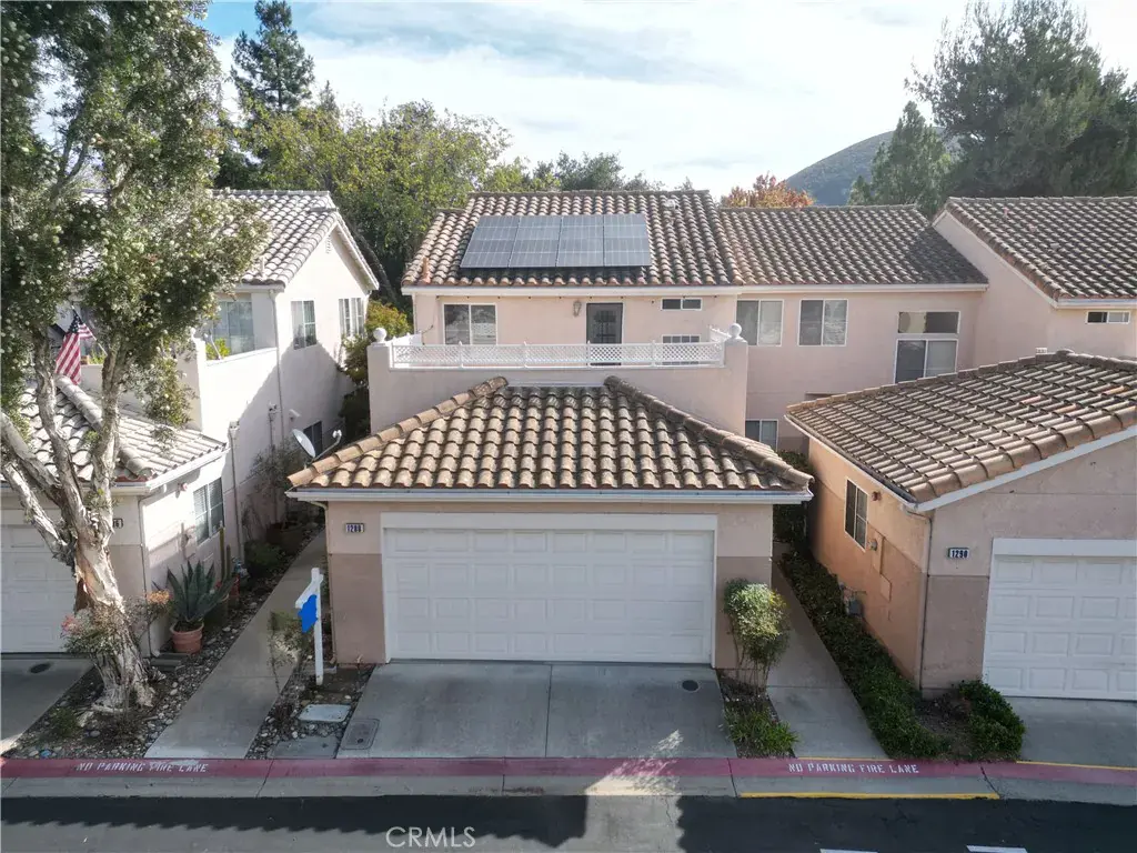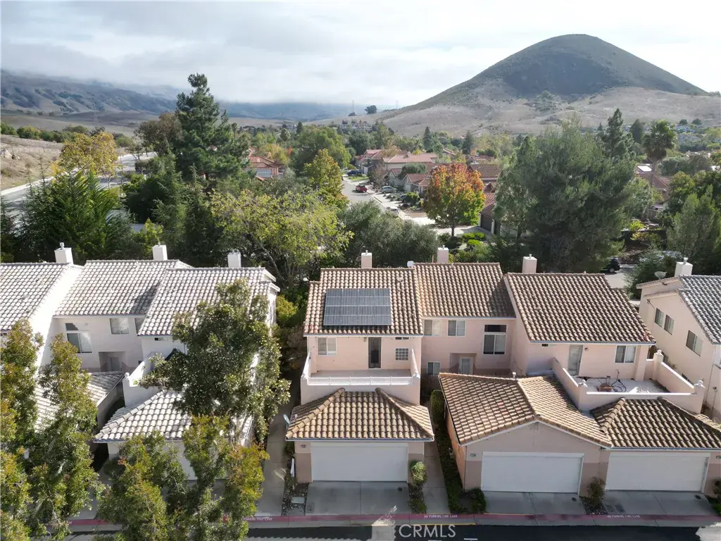 Islay Pointe Villas is a beautifully landscaped planned unit development neighboring the Islay Foothills and Islay Hill Park where the picturesque mountain views set a serene country backdrop. The common areas at Islay Pointe Villas are beautifully maintained and include a private recreation facility, featuring a swimming pool and heated spa. This, newly painted interior, two-story residence features two bedrooms plus an open bonus/loft area. The first floor welcomes you into an open dining and living room with a wall tiled gas fireplace and sliding glass doors inviting you outdoors to a quaint patio and yard area. The updated kitchen features a large center island hosting a gas stove and oven, Quartzite countertops, custom maple cabinets and pantry with custom pullout shelves for ample storage throughout. A convenient half bath is also located just off the kitchen. The second floor accommodates the primary bedroom featuring an expansive private deck (newly resurfaced) to enjoy views throughout the day and evening. The primary bedroom offers a generously sized closet with storage cabinets above, and a nicely appointed primary bathroom showcasing a luxury bidet toilet, dual sink vanity and jetted tub. The second bedroom and ensuite bathroom are conveniently situated across the bonus space offering comfort and privacy. Added elements on the second floor include an enclosed laundry closet and a versatile loft/bonus space between the bedrooms. The home is equipped with laminate and vinyl flooring throughout for easy care and maintenance. The two-car garage is well fitted with a full wall of custom cabinets for storing all your tools and supplies and an EV charger for your convenience. Located near shopping and schools, this home checks all the boxes for the first-time homeowner or retiree. Downtown San Luis Obispo is just minutes away with easy access to Hwy 101, Orcutt Road, and Hwy 227. Call soon to schedule a tour.