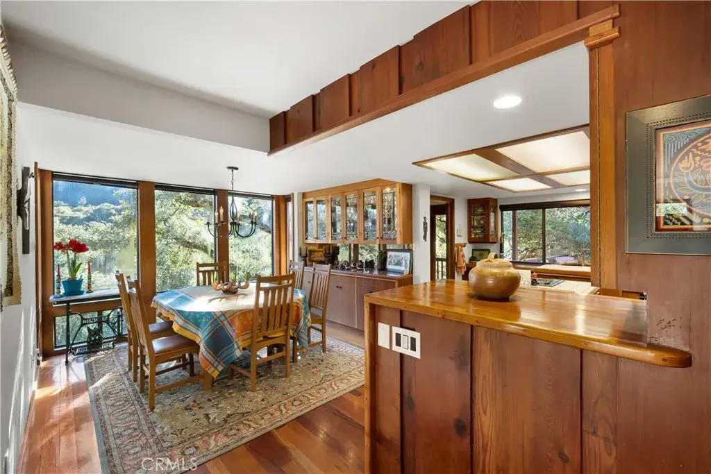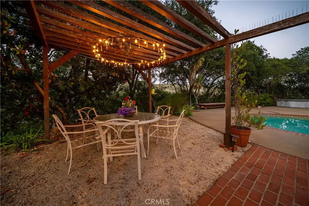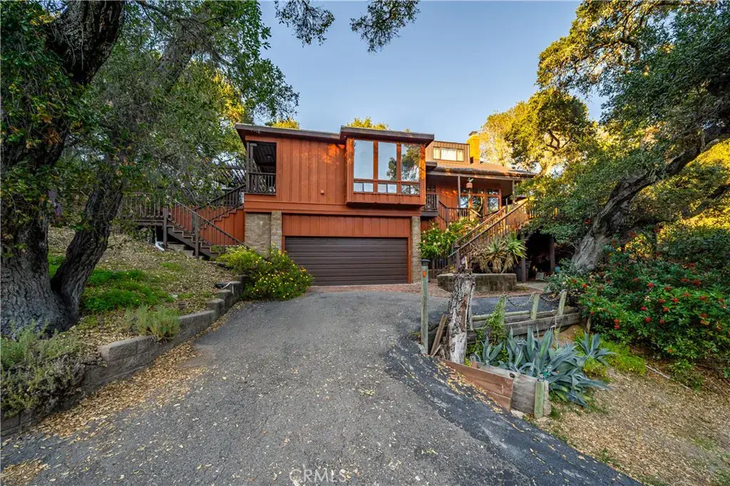 Rustic meets elegant in this See Canyon estate with multi-generational and income producing potential. This is a rare opportunity to own nearly 14 acres in one of the Central Coast’s most coveted settings. Set amongst the panorama of the Santa Lucia foothills, lush coastal woodlands, and apple orchards, this gated property offers convenient access to Avila Beach and San Luis Obispo, creating a lifestyle that offers a blend of tranquility and connectivity. The private family retreat includes a four-bedroom, three-bath main residence offering approximately 2,252 sf of living space, a one-bedroom, one-bath guest home, with approximately 504 sf of living space, and a versatile shop/barn spanning approximately 640 sf with a 240-sf loft. The property also features both an attached two-car garage, with wine storage, and a detached two-car garage. The inviting main residence showcases exceptional craftsmanship and artistry, highlighted by mahogany woodwork and stained-glass accents throughout. Wood-beamed ceilings and expansive windows define the living room, creating a comfortable space to relax while taking in the serene natural surroundings. At the heart of the home, the kitchen is designed for everyday cooking and shared moments, featuring custom cabinetry with generous storage, rich butcher block counters, an island with breakfast bar, and a recently updated oven, dishwasher, and microwave—ideal for preparing meals to enjoy with family and friends. Just beyond, the adjacent dining room offers a warm setting, complete with a candelabra light fixture, built-in buffet, and floor-to-ceiling windows that frame the landscape and create a memorable backdrop for gatherings around the table. The owner’s suite, a private retreat, offers a walk-in closet with built-in organizers, an en-suite bath featuring dual sinks, a walk-in shower, and patio access. Three secondary bedrooms in the main residence, including one with an en-suite bath, provide plenty of room for guests, offer flexible uses including a home office, and all open to decks. With spectacular views of rolling hills and stately oaks, the “Treehouse”, a one-bedroom, one-bath guest house, is ideal for extended family or rental income, and the barn and loft, can be re-imagined as an art studio or carpenter’s den. With a refreshing swimming pool and multiple seating areas, the outdoor spaces set the stage for relaxation. Additional highlights include owned solar with Tesla Powerwall and AC in the main residence.