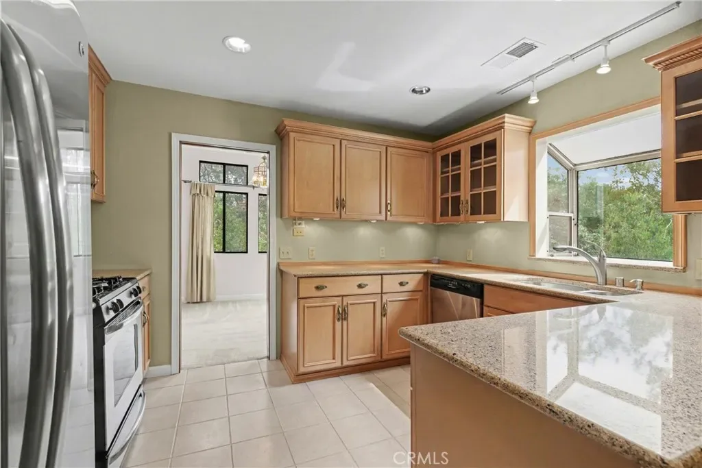 The well-appointed kitchen is both functional and welcoming, complete with granite countertops, ample cabinetry, and a seamless flow into the dining and living areas—perfect for everyday living or entertaining.