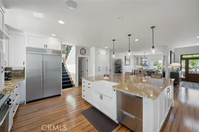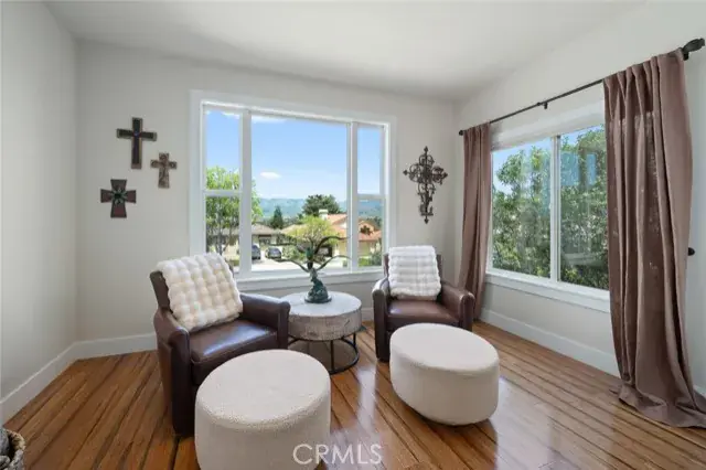 Welcome to a beautifully reimagined 4 bedroom residence nestled in one of the most tranquil and picturesque corners of the San Luis Obispo Country Club. Backing to gently rolling hills and showcasing sweeping views of the breathtaking Edna Valley, this thoughtfully remodeled home offers the perfect fusion of peace, privacy, and luxurious comfort, all within one of the region’s most sought-after school districts. Step inside to discover an inviting interior where warm hardwood flooring flows throughout, setting the stage for timeless elegance. At the heart of the home, the expansive chef’s kitchen is anchored by a striking granite-topped island, perfect for culinary creations and casual gatherings alike. The open-concept design effortlessly connects the kitchen, dining space, and outdoor patio, creating an ideal environment for entertaining or everyday living. Designed with intention, three of the four bedrooms are strategically positioned to capture stunning valley views, including the sumptuous primary suite and a private junior suite, each with its own full bath. The primary suite is a true sanctuary, complete with dual walk-in closets, a cozy fireplace, and a private balcony where you can savor morning coffee with the sunrise. Work from home in comfort and style from the light-filled dedicated office, thoughtfully designed with custom built-in storage. Downstairs, a versatile bonus room with two closets and direct garage access offers limitless potential as a guest suite, game room, gym, or creative studio. The oversized garage is a rare find, comfortably accommodating two vehicles plus ample room for storage, a workshop, or even a golf cart—perfect for those who enjoy the local lifestyle. An interior staircase from the garage leads to a spacious laundry room outfitted with floor-to-ceiling cabinetry and a deep utility sink for added convenience. Outside, your private oasis awaits. Relax beneath the covered patio, follow the breezeway to a peaceful lounge area and in-ground hot tub, or meander up the stone path to a secluded hilltop perch offering panoramic views of Edna Valley and the iconic Seven Sisters. Whether hosting guests or enjoying a quiet evening under the stars, the setting is nothing short of extraordinary. Timeless in design, flawless in function, and unmatched in location, this home offers a rare opportunity to own a slice of California’s Central Coast at its most serene.