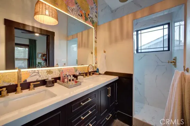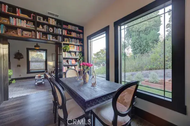 The home is equipped with energy-efficient dual-pane windows, new insulation, and soundproofing mineral wool, creating a peaceful and comfortable environment. Unique architectural features include built-in bookshelves, a hidden doorway, and elegant updates like a California Faucets solid brass rain shower in the master bath. The spacious crawl space offers potential for a wine cellar or additional storage.