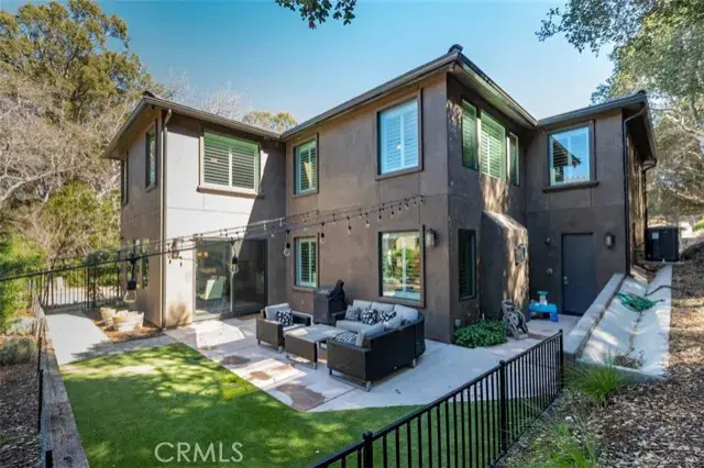 First time on the market— exceptional opportunity in prestigious Prefumo Canyon Estates. This semi custom contemporary -inspired residence boasts remarkable curb appeal, with a grand double-door entry flanked by cypress trees and surrounded by mature, thoughtfully designed landscaping. The stone-accented stucco façade is timeless, while a spacious driveway and attached two-car garage with epoxy flooring provide both functionality and style. The meticulously maintained backyard is a private sanctuary bordered by a wrought iron fence and oak-studded Irish Hills with a paved patio, creating an inviting atmosphere for gatherings or quiet afternoons outdoors. Inside the bright and airy interior is filled with natural light. The main living space features interior shutters, recessed lighting, and an electric fireplace with a built-in niche—ideal for displaying artwork or mounting a television. The open-concept layout seamlessly connects the living area to the gourmet kitchen, where a generous island with seating, abundant storage, and a dual-basin sink serves as the heart of the home. Pendant lighting, a decorative tile backsplash, and shaker-style cabinetry elevate the design, while premium stainless steel appliances—double oven, gas range with hood, refrigerator, beverage center, and dishwasher—provide exceptional culinary capability. The adjacent dining area looks out over the landscaped backyard, offering a peaceful backdrop for everyday meals and special occasions. A stylish half bath completes the lower level. Upstairs, a spacious bonus room and a dedicated office with custom cabinetry enhances the home’s functionality. A luxurious primary suite with French doors, a ceiling fan, and an expansive ensuite bath with dual sinks, dedicated vanity area, soaking tub, walk-in shower, and a large walk-in closet is a true retreat. The second bedroom showcases breathtaking views of San Luis Obispo and the Irish Hills, while the third bedroom offers tranquil, shaded outlooks. An additional full bath and a well-appointed laundry room with utility sink and storage complete the upper level. The property features energy-efficient solar panels. This is a rare offering in one of San Luis Obispo’s most sought-after neighborhoods. Every detail has been curated with precision and pride of ownership. Located minutes from local hiking, downtown, fine dining, boutique shopping, the regional airport, and everything that defines life on the Central Coast.