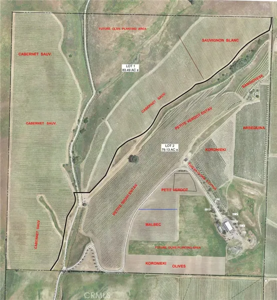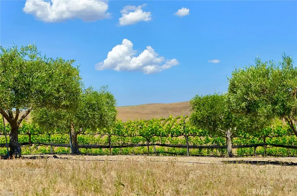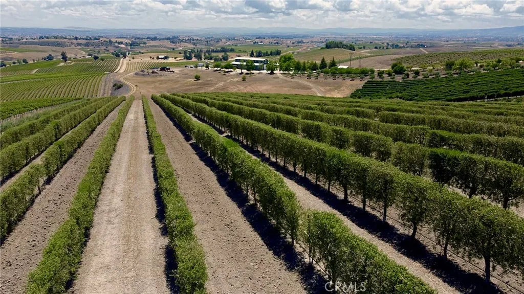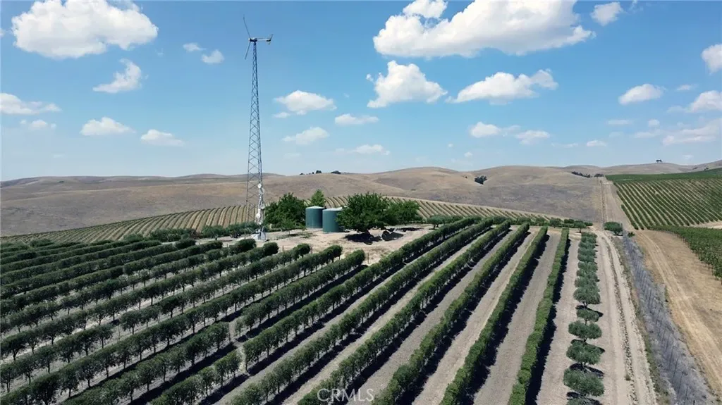 This breathtaking and prestigious 162.61 acre Olive Ranch and Vineyard is located in the rolling hills of the Paso Robles Estrella Appellation. Specializing in the growing and production of award-winning Extra Virgin Olive Oil and premium wine grapes. The property features a beautiful 4950 sq.ft. two story barn. The lower floor of the barn is equipped with a permitted bathroom, shower, water softener, laundry, and septic system. Heavy concrete paving surrounds the entire barn. Just off from the barn is a stunning open concept entertainment center with fountain, water misters for warm days and a beautiful fireplace for cool evenings. The shooting range located on the other side of the barn has a 10X10’ concrete shooting stand, aiming out to movable short and long range targets. The property agricultural mainstay of the property is its 87 acres of vineyards (Cabernet Sauvignon, Sauvignon Blanc, Petite Sirah, Malbec, Petite Verdot, Sangiovese) and 15+ acres of Olive trees (Arbequina, Koronieki and Mixed Tuscan). There is a 1 acre lavender field and another 18.8 acres of additional olive tree or vineyard expansion. Five 10,000-gallon water storage tanks co-located in a hill-top tank farm with electronic controls and water level indicators. The Irrigation system is gravity fed from tanks throughout the olive blocks and eastern part of the vineyard. The water is supplied by 2 permitted and vested wells. The wells are 650’ deep and produce 70-100GPM with no water table issues. Water quality is excellent and water pressure is 35-50psi throughout. Forever views Gazebo: 16ft. diameter, octagon, Amish style shade gazebo on heavy elevated concrete slab with electric fan and lights and views. The Bergey 10 Kw Wind Turbine Generator mounted on a 100 ft. tall heavy duty, galvanized steel tower structure also supports a wi-fi repeater station that is leased, providing free high power internet and wi-fi service to the property. This stunning property has numerous possibilities for the building of a primary Residence. Truly a special place that makes beauty, prestige and profitability a reality.