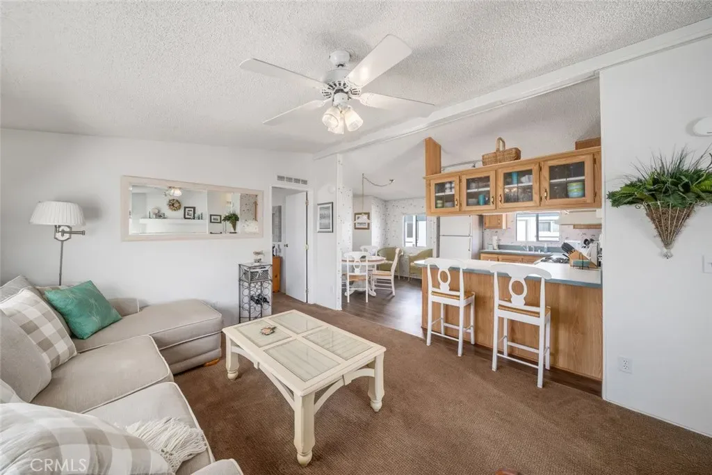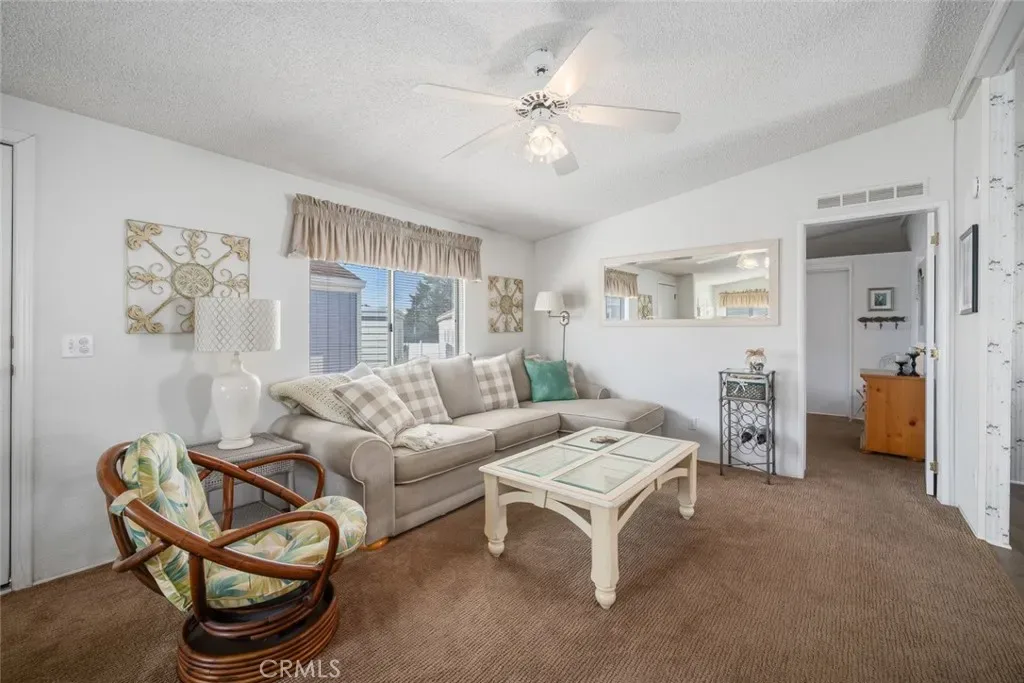 Dreaming of a coastal lifestyle where nature and comfort merge effortlessly? This fully furnished, single-story 2-bedroom, 2-bath manufactured home in the 55+ community of Pine View Mobile Home Park delivers, whether staying year-round or as a seasonal retreat! Inside, vaulted ceilings and sunlight from wide windows create an open, inviting feel, with thick carpet underfoot and a corner fireplace in the living room for casual evenings. The eat-in kitchen features warm, wood-toned cabinetry, a breakfast bar, and modern appliances, making entertaining easy.