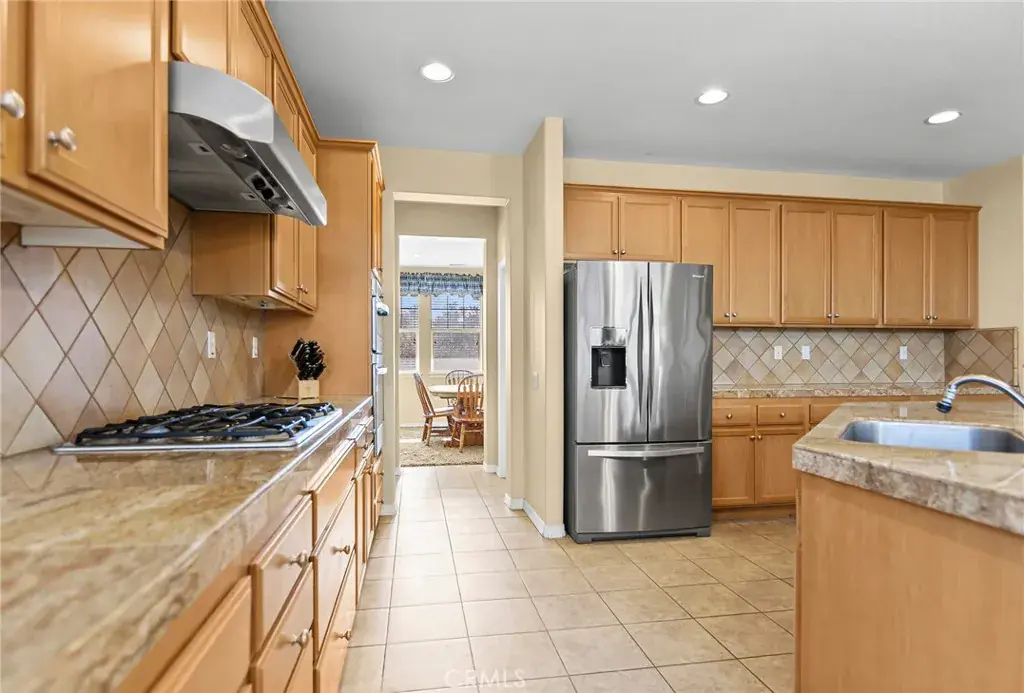 Step inside to a sunny and open floor plan that flows effortlessly for everyday living and entertaining. The living room features a cozy fireplace and a slider leading to the backyard patio, complete with an oversized pergola ideal for family gatherings and outdoor relaxation. The kitchen is a chef’s delight, boasting granite countertops, a snack bar, butler’s pantry, and a spacious walk-in pantry. Enjoy meals in the casual dining area or the formal dining room for more elegant occasions.