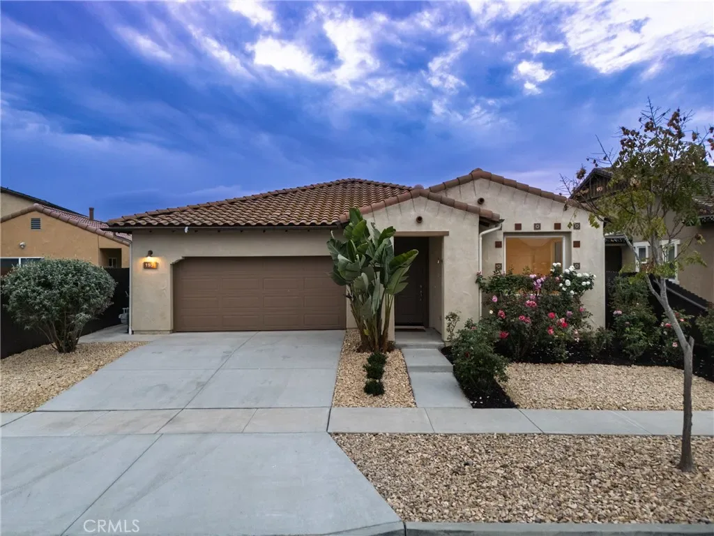 Experience refined living in this beautifully appointed 4-bedroom, 3-bath home where modern comfort meets effortless sophistication. The open-concept layout is filled with natural light, creating an inviting and airy ambiance from entry to living spaces. At the heart of the home, the chef-inspired kitchen features granite slab countertops, rich dark wood cabinetry, and quality appliances–perfect for everyday living and entertaining. Porcelain tile flooring flows throughout for a sleek, cohesive look. The private primary suite is thoughtfully located at the rear, offering a peaceful retreat with a walk-in closet and en-suite bath featuring a vanity with dual copper sinks, a soaking tub, and separate shower. Additional highlights include owned solar, EV charging, tankless water heater, reverse osmosis system, smart thermostat, and dual-pane windows. Fresh interior paint and updated exterior fencing enhance its turnkey appeal. Enjoy low-maintenance landscaping with rose gardens and clean hardscape. Located in a quiet neighborhood with no HOA, this home offers privacy, comfort, and modern upgrades.