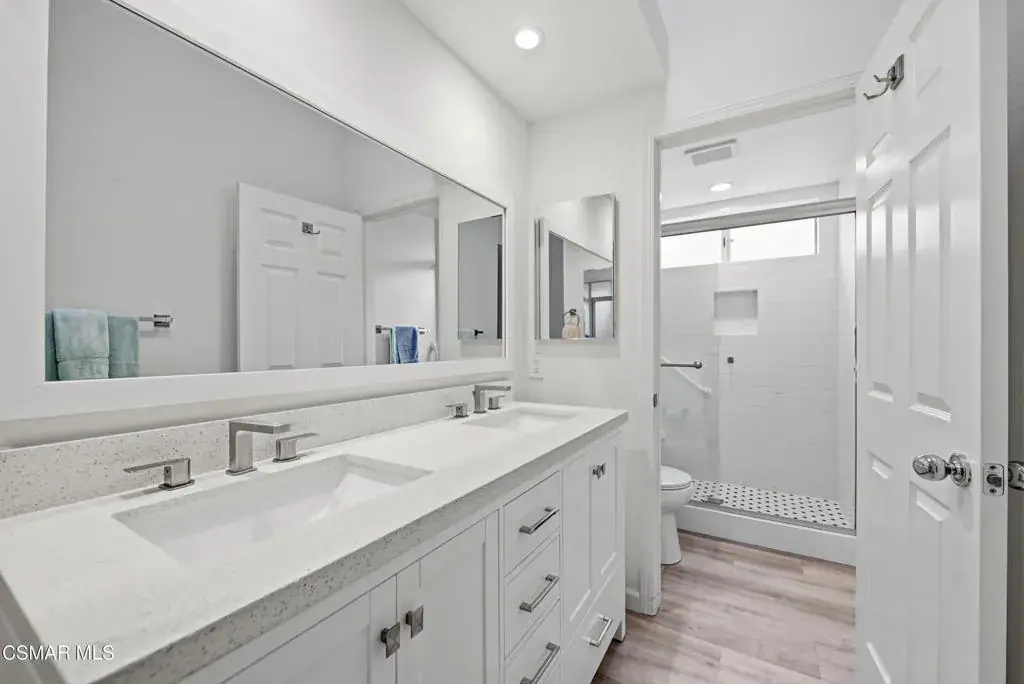 Welcome to 2565 Winthrop Court, a beautifully situated single story home tucked away on a quiet cul-de-sac in a desirable Simi Valley neighborhood. This residence offers a functional and inviting floor plan designed for comfortable everyday living and effortless entertaining. The interior features spacious living areas with abundant natural light, creating a bright and welcoming atmosphere throughout the home. Approaching the home, you will love the curb appeal with lush landscaping and mature tree out front. Entering the home is a large living space equipped with newer woodlike flooring, gas fireplace with mantle, and access to an additional living space and kitchen. The kitchen is centrally located and flows seamlessly into the main living spaces, offering ample cabinetry and workspace, ideal for both casual meals and gatherings. The home’s layout provides a thoughtful separation of living and private areas, enhancing both convenience and privacy. Bedrooms are generously sized, offering comfortable retreats, high ceilings, ceiling fans, and mirrored closet doors. The primary bedroom is especially expansive and has direct access to the backyard as well as the en-suite bathroom. Both bathrooms have been recently remodeled with the primary bath containing dual sink vanity, large mirror, recessed lighting, and a walk-in shower stall with beautiful tile and a handrail. Secondary bathroom boasts a beautiful gray vanity with white quartz countertop, an oval mirror and walk in shower stall. The property also features a good sized attached direct access garage with additional driveway and street parking. Outdoors, the private yard provides plenty of space to relax, entertain, or personalize to your lifestyle needs. A beautiful newer patio cover accentuates the rear yard that also boasts a concrete pad, and attractive landscaping throughout. Whether enjoying morning coffee, hosting friends, or creating your own outdoor oasis, the yard offers flexibility and privacy. The cul-de-sac location minimizes traffic and enhances the peaceful residential feel. Conveniently located near parks, schools, shopping, dining, and commuter routes, this home presents an excellent opportunity to enjoy the best of Simi Valley living in a well-established community.