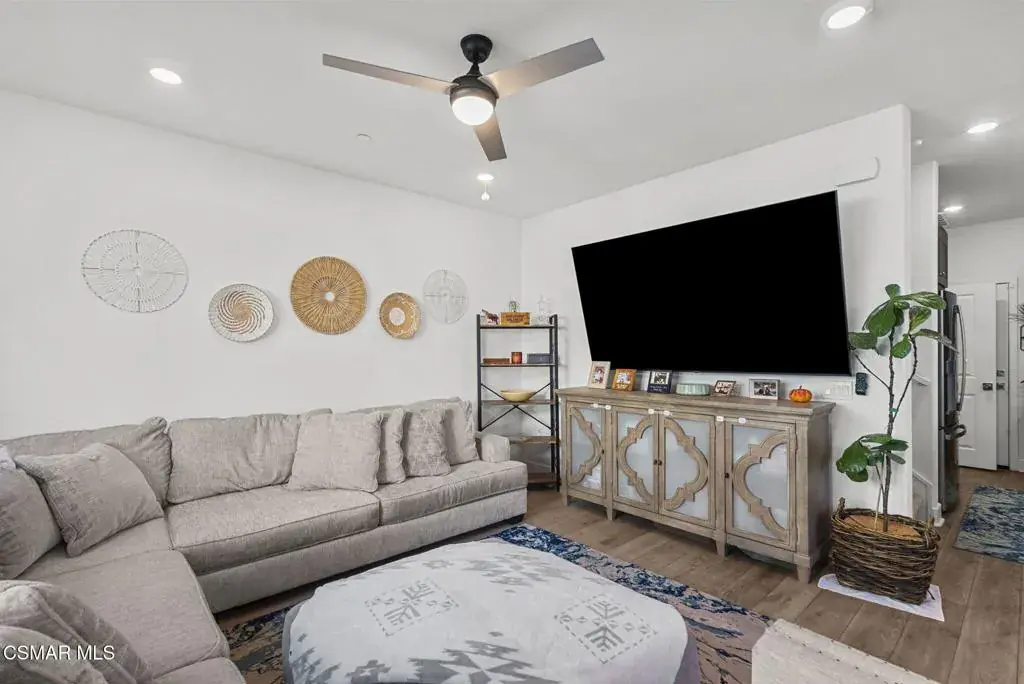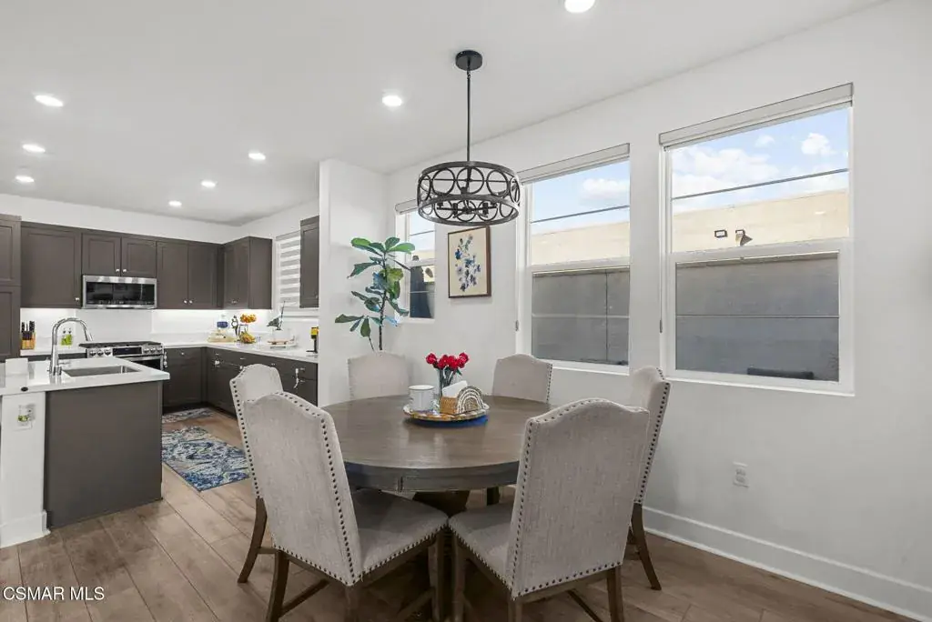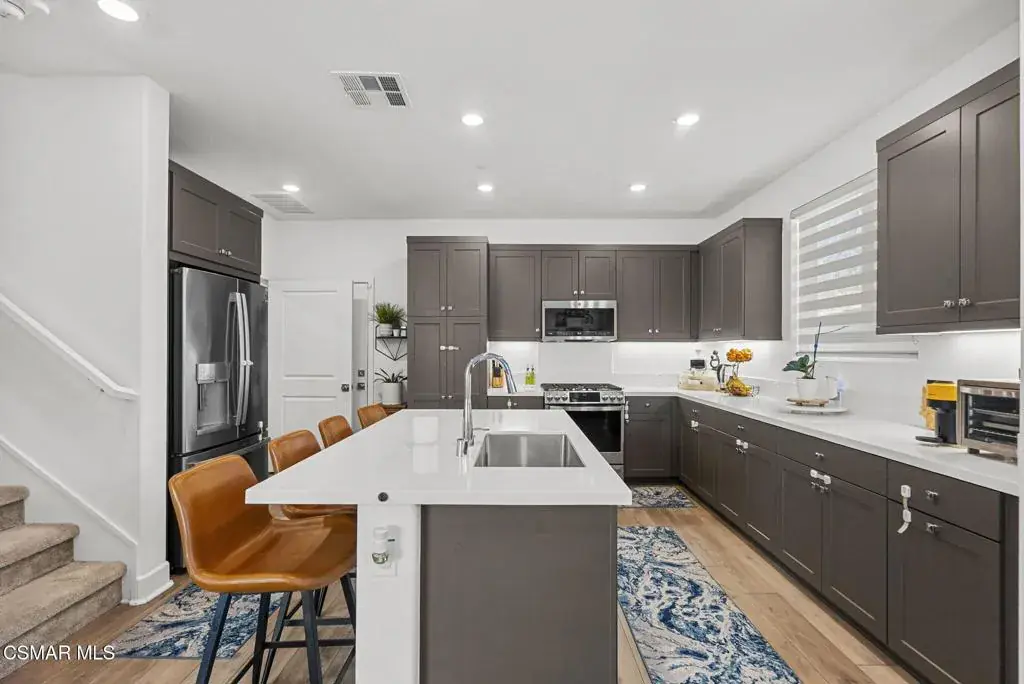 Welcome to 2579 Little Rock Ln, a beautifully appointed 4-bedroom, 3.5-bathroom in the heart of Central Simi Valley offering approx. 1819 sq. ft. living space. This newer build at Sycamore Grove, is a modern Mediterranean resort style community that includes many smart home technologies. The chef’s kitchen features an oversized island, pristine quartz countertops, stainless steel appliances, a 5 burner gas cooktop, pantry with pull out shelving, a ton of cabinet space, and a deep single-bin sink. The openness to the family area flows seamlessly making it perfect for large gatherings. The whole home is flooded with natural light and each window is adorned with beautiful custom blinds. Upstairs features a luxurious primary suite with a large walk-in closet, over sized shower and gorgeous quartz counters. The 3 additional bedrooms generously sized, with one featuring a full attached bathroom. The home boasts these smart home technology features: Rinnai tankless water heater, Moen-Flo smart monitor for water leaks & water usage, ring door bell & alarm, solar panels, smart Honeywell thermostat, and a charging adaptor/plug that is compatible with Tesla charger. The home also boasts a hot water recirculation system to receive hot water quickly at master shower & the kitchen sink. This unit is an end unit, so only 1 neighbor on one side. It has a front AND SIDE PATIO area and does not back up to an open parking lot. There are only 8 units that have this additional side patio area. This resort style community offers exclusive amenities such as a swimming pool area with BBQ’s, fire pit, cabanas, and luscious seating. There is also a community garden, additional BBQ area, park area, another fire pit area with bocce court for hours of entertaining guests. Conveniently located to easy freeway access, many restaurants, shopping, grocery stores, banks, Starbucks and fitness centers. The Sycamore Groves community offers both luxury upgrades, with everyday practical living.