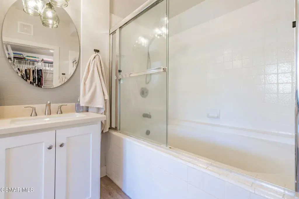 Extensively & Tastefully Refurbished 2 + 2 Lower Unit SINGLE STORY behind the gates at The Club in Wood Ranch!! Situated in a cul-de-sac very near the LAKE with peaceful HILLS & LAKE VIEWS!! This lovely home exudes tranquility at every turn with LVP flooring throughout, quartz/subway tile & newer cabinets in the kitchen & is imminently functional with the interior laundry closet, attached two-car garage, two separate patio areas with sliding doors from the dining area & primary bedroom! Common area amenities include a sparkling pool/spa, paved walking paths, gated lake access, sport courts, parks, hiking trails, shopping & dining venues, VA Approved, etc. Look no further, Welcome Home to The Club at Wood Ranch!!