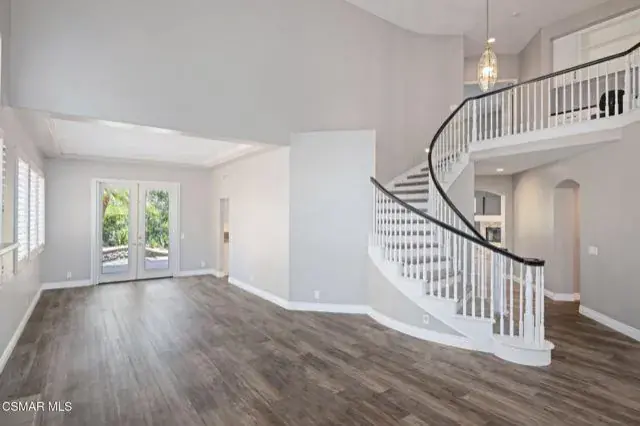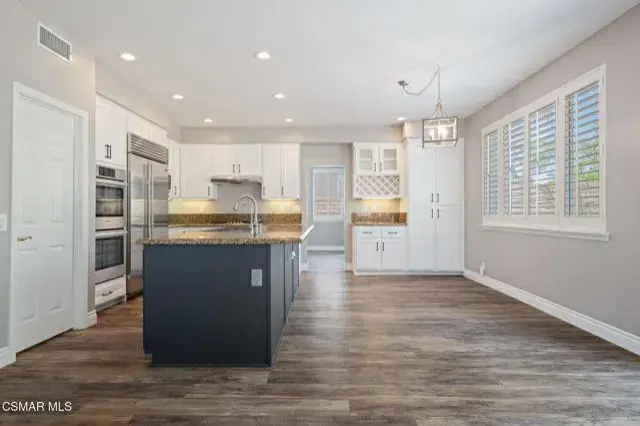 This beautifully upgraded Wood Ranch home offers 5 bedrooms, 4 bathrooms, and 3,639 sq ft of refined living space, along with a private backyard and seamless indoor-outdoor living designed for easy entertaining. Ideally located near trails, parks, golf, and much more, this residence combines comfort, elegance, and convenience. Step into a grand foyer with soaring ceilings and natural light that flows into the formal living and dining rooms–perfect for gatherings.The gourmet kitchen features Bosch appliances, a Sub-Zero freezer, granite counters, a center island with seating, and a walk-in pantry, opening to a warm family room with fireplace and custom built-ins. The main suite is a private retreat with its own fireplace, spacious walk-in closet, and a serene balcony. Just off the suite is a flexible bonus room–ideal as a home office, gym, nursery, or quiet reading space. The spa-inspired bath offers dual vanities, a soaking tub, and an oversized walk-in shower.Upstairs, apart from the main suite, there are three additional spacious bedrooms–one with an ensuite bathroom and two with access to a Jack-and-Jill bath. All upstairs bedrooms feature ceiling fans, generous closet space, and plenty of natural light. The home also offers dual-zoned A/C and plantation shutters throughout for style and comfort year-round.Out back, enjoy a newer built-in BBQ island with sink, fridge, stamped-concrete patio, a plunge spa with waterfall feature, and a comfortable seating area for relaxing or casual outdoor dining. Mature landscaping provides summer privacy, while winter reveals northern mountain views.The main level includes a well-appointed bedroom with an adjacent full bathroom–ideal for guests or multi-generational living–as well as a full laundry room with sink and storage. Elegant hardwood flooring runs throughout, and a spacious three-car garage offers built-in cabinetry for organized storage.This prime location is just minutes from Wood Ranch Golf Club for golf, dining, and social events, Rancho Madera Community Park with tennis courts, basketball courts, playgrounds, picnic areas, and open green space, the highly regarded Wood Ranch Elementary School, and the renowned Ronald Reagan Presidential Library. Residents also enjoy access to miles of scenic hiking and biking trails, a community pool and spa for relaxing and recreation, and the peace of mind of 24-hour security. A compelling blend of elegance, comfort, and the best of Wood Ranch living.