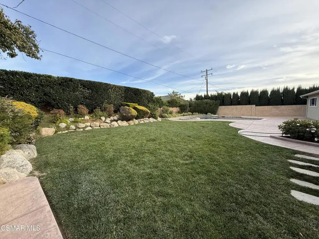 Full of upgrades including freshly painted interior, brand new HVAC system, and new LED lighting in the interior of the home! Welcome to this beautiful single story, 3 bedroom, 2 bathroom, 1,458 square foot home in the heart of Simi Valley! With a great location close to freeways, shopping, and schools (.3 miles to Big Spring Elementary and 1 mile to Valley View Middle School) this home must not be missed! Step into the entry which leads you to the cozy family room with renovated built-in cabinetry and a glass fireplace to relax by. The open kitchen features a center island, lots of cabinet space, and opens to a dining area. The primary bedroom features beautiful views of the lush backyard and an en-suite bathroom. The two secondary bedrooms share a modern remodeled bathroom. The backyard is the perfect space to for entertaining, complete with a pool and spa with LED light features and a spacious patio and grassy area to play in. Other amenities of this home include an attached 2 car garage with an additional space perfect for an office or den, newer flooring and brand new carpet, wiring for audio and surround sound, an oversized shed for storage, and much more!