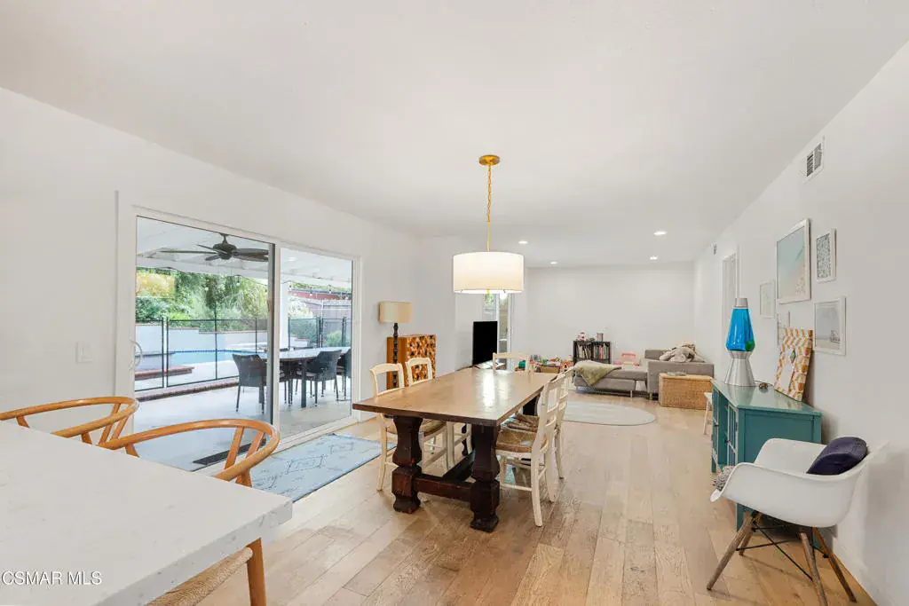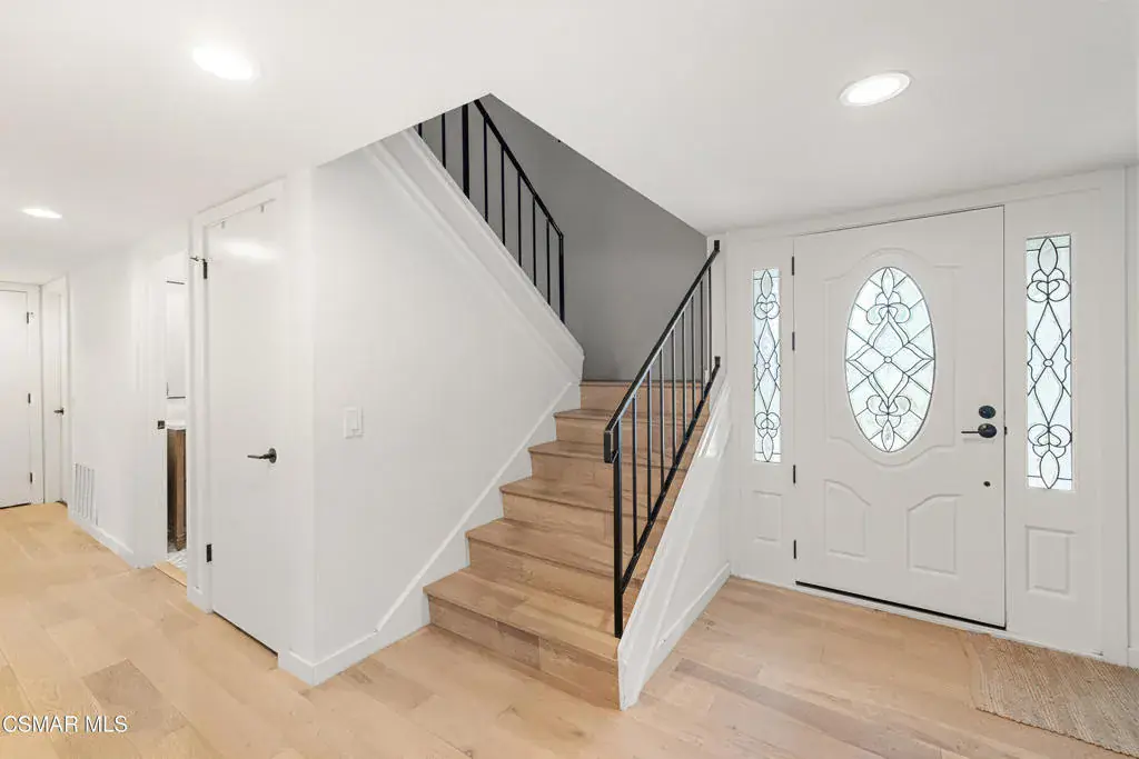 Welcome to 3562 Quincy Ave. Located in a prime Simi Valley neighborhood, this beautiful two-story home offers 4 bedrooms, 3 bathrooms, and approximately 2,378 square feet of comfortable living space on an 8,700+ square foot lot. The inviting interior features gleaming wood laminate flooring, smooth ceilings, recessed lighting, and a marble fireplace anchoring the living room. Dual-pane windows and plantation shutters enhance both style and energy efficiency. The gorgeously remodeled kitchen is a standout, boasting quartz countertops, abundant cabinetry, a prep sink, stainless steel appliances, and a breakfast bar, all open to the cozy family room and overlooking the backyard. All bedrooms are located upstairs, including a spacious primary suite with a walk-in closet and en suite bath featuring dual sinks, a spa tub, and a separate shower. Secondary bedrooms are generously sized, with one offering access to a hidden bonus room – ideal for a playroom, extra storage, or creative space. Step outside to an entertainer’s dream backyard with a large covered patio complete with ceiling fans, a sparkling pool and spa, and a fire feature – perfect for relaxing or hosting gatherings. Additional amenities include central air and heat and an oversized direct-access two-car garage. This is truly a must-see home!