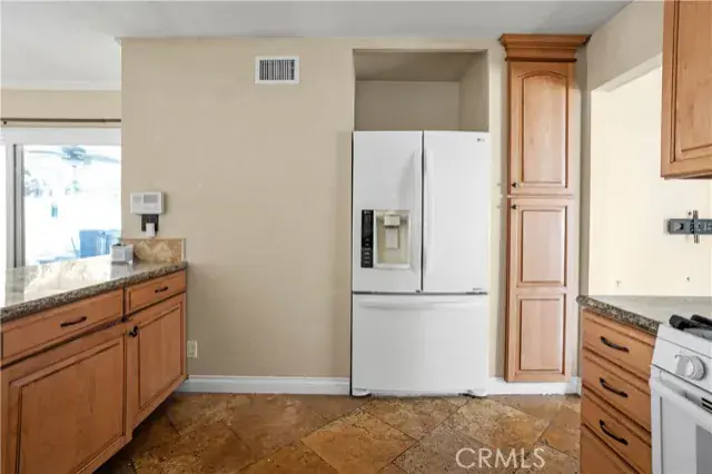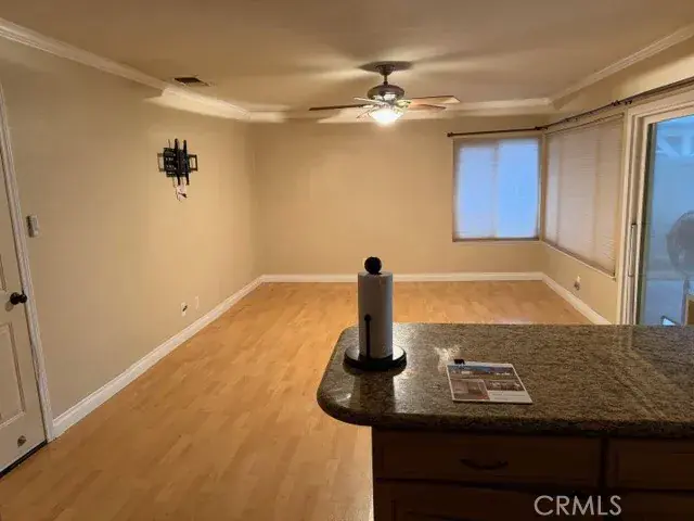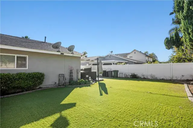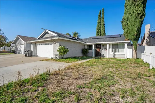 Welcome to this delightful 3-bedroom, 2-bath home offering 1,310 sq. ft. of comfortable living space on a nearly 6,000 sq. ft. lot. Thoughtfully upgraded in 2016, this charming home just needs a fresh coat of paint and a little tender loving care outside to make it truly shine. The spacious living room features vaulted ceilings and a cozy fireplace, creating an inviting atmosphere for friends and family. The kitchen offers granite countertops, stylish cabinetry, and quality appliances. The primary ensuite includes a large walk-in closet, while the home’s travertine and Pergo flooring, crown molding, and upgraded baseboards add an elegant touch throughout. Additional highlights include a spacious garage with pull-down attic access for added storage. The backyard is designed for relaxation and easy maintenance, featuring artificial turf, vinyl fencing, a spa, and a covered patio with a ceiling fan perfect for enjoying the outdoors. Two large storage sheds provide plenty of extra space, one ideal for tools and the other perfect as a small workshop or playroom.