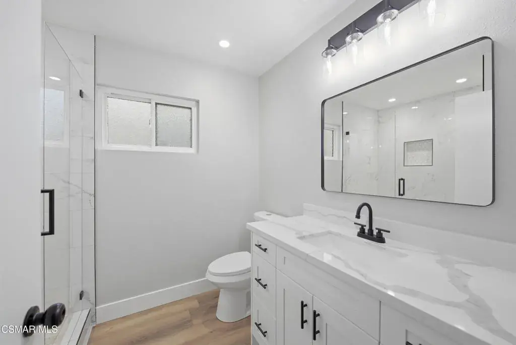 Welcome to this fully remodeled home in Simi Valley! This beautifully updated home offers modern comfort and style throughout. 3 spacious bedrooms + 4th bonus room- perfect for office, exercise room, or possible 4th bedroom. Enjoy all new wood like flooring, fresh paint throughout, all new kitchen and baths, plus a newly installed roof. The contemporary kitchen shines with quartz counter tops, a stylish tile backsplash, and new stainless steel appliances-perfect for everyday living and entertaining. The spacious primary bedroom features a private en-suite bathroom with new vanity with quartz counter tops and gorgeous tiled shower with new plumbing futures. Secondary bathroom is upgraded with new vanity and newly tiled shower with tub, Step outside to a newly landscaped backyard and patio area, ideal for outdoor enjoyment, with added convenience of RV Access!