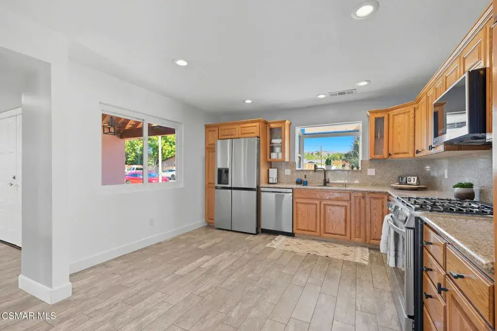 Nice Home in the Texas Tract. Simi Valley home in a Great Location. Open Floor Plan w/ an Upgraded Kitchen w/ Granite Counters, a Garden Window & a Dining Area w/ a Barn Door access to a Guest Bathroom. Large Living Room w/ a Wood Burning Fireplace & Recessed Lighting. Newer Bathroom w/ a Tub & Shower. Primary Bedroom w/ Recessed Lighting & 2 Closets. New Roof. Dual Pane Windows. 2 Car Garage w/ Newer Large Work Bench & Cabinets. Upgraded Central Air & Heating. Tankless Water Heater. Large Backyard w/ a Covered Patio & room to build a pool or possible ADU. Close to schools, shopping, entertainment & The Simi Hills Golf Course.