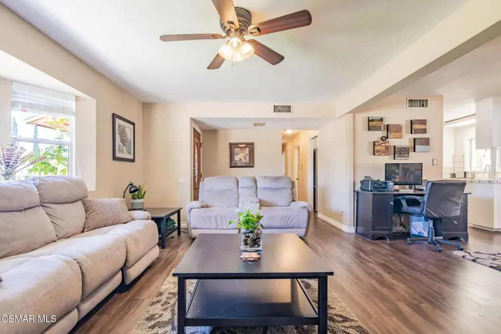 This is the home you’ve been waiting for! Beautifully updated and thoughtfully expanded, this stunning Simi Valley residence offers the perfect blend of comfort, style, and functionality. The spacious family and living rooms have been opened up to create an inviting great room layout — ideal for entertaining or relaxing with loved ones.Enjoy the versatility of a 500 sq. ft. permitted addition featuring a bedroom and den, making this a 4 Br 2 Bath perfect for a blended family, guest suite, or home office setup. A large screened-in patio room adds even more living space to enjoy year-round.Upgrades include dual-pane windows, newer flooring, a new oven, 4-year-new HVAC system, leased solar ($149/month) for energy savings, and beautifully upgraded bathrooms — including a front bath with a roll-in shower for accessibility. The backyard also features a 10′ x 12′ storage shed, providing plenty of extra space for tools, hobbies, or seasonal items.Located in a desirable Simi Valley neighborhood, this home truly has it all — space, updates, and comfort. Don’t miss the chance to make it yours!