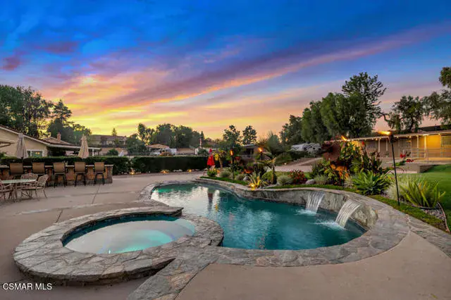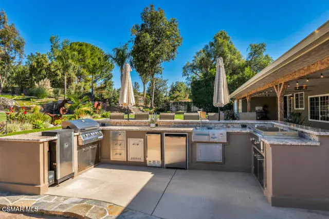Welcome to this exquisite single-story private estate located in the highly sought-after Bridle Path equestrian community – where luxury, lifestyle, and meticulous care come together. Set on over half an acre of all flat and fully usable land, this turn-key, impeccably maintained 4-bedroom, 3-bathroom home showcases exceptional pride of ownership inside and out. From the manicured gardens to the artfully designed hardscape and resort-style features, every detail has been thoughtfully curated to create an unforgettable living experience.Tucked away on a private cul-de-sac shared by only four homes, this residence offers a rare combination of privacy, space, and dramatic curb appeal.The backyard is truly one of the most remarkable and dramatic outdoor settings in the entire Bridle Path community – a genuine entertainer’s paradise. Enjoy the remodeled Pebble Tec pool with a beach entry, sand lounging area, and an incredible Fire & Ice feature built into a cascading waterfall that blends fire, water, and light in stunning harmony. A giant outdoor bar and kitchen with ample bar seating creates the perfect space for gatherings and celebrations, while the 750-square-foot covered patio offers a seamless extension of the living space for year-round indoor-outdoor California living. The result is a breathtaking, park-like setting ideal for entertaining, relaxing, or simply enjoying the tranquility of your own private retreat.Equestrians will appreciate the three-stall barn with front turnout and tack room, along with the expansive grassy area that provides endless versatility for recreation and entertaining.Inside, the thoughtfully designed open floor plan offers a comfortable flow between rooms while maintaining distinct, private spaces. The formal dining room leads into the spacious family room, anchored by a cozy brick fireplace that creates a warm and welcoming ambiance. The gourmet kitchen is both beautiful and functional, featuring a massive center island, gleaming granite countertops, stainless steel appliances, and breakfast nook seating, perfect for casual meals and entertaining alike.The expanded primary suite is 750 square feet and a true retreat, featuring a generous sitting area, spa-inspired bathroom, and a large custom walk-in closet. French doors open directly to the pool, waterfall, and firepit, providing a peaceful escape and a direct connection to the stunning outdoor landscape.Secondary bedrooms are generously sized and thoughtfully positioned for comfort and privacy. One of the bedrooms features its own private ensuite bathroom and double doors overlooking the pool and waterfall, offering a serene and luxurious guest experience or the perfect setting for a home office.The garage is an absolute showpiece, complete with custom cabinetry wrapped in polished diamond-plate aluminum, epoxy flooring, a stainless steel workbench, and a custom wrought-iron garage door – blending craftsmanship, style, and function.Residents of the Bridle Path community enjoy access to multiple riding arenas and a private multi-hundred-acre mountain park featuring scenic riding and hiking trails… an unmatched lifestyle for horse lovers and outdoor enthusiasts.This impeccably maintained, turn-key estate offers one of the most dramatic and beautifully designed backyards in Bridle Path…a rare combination of elegance, privacy, and entertainment potential that truly defines California living at its finest.