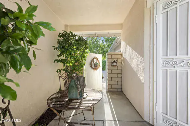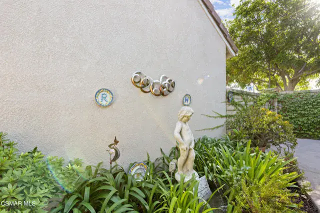 Major Price Improvement! Captivating Find in the highly-desirable Casa Flores 55+ Gated Community with ideal location in the complex, directly across from the sparkling community pool and spa! Only one owner since originally built! Gorgeous two-bedroom, 2-1/2 bath with 1,494 square feet and every upgrade: Custom crown molding in living and dining areas, and the light and bright kitchen has been updated with granite kitchen countertops, pull-out shelves and upgraded appliances, including trash compactor. With direct-access from the convenient indoor laundry room, the finished two-car garage features epoxy flooring, built-in storage and work bench. The walk-in main closet provides ample storage with optimized designed, while all the dual-paned windows highlight custom plantation shutters and bespoke window coverings. Enjoy the gas fireplace on chilly nights, or the beautiful, professionally-landscaped backyard during the warmer months. Nothing to worry about with custom security doors and leaf-filter gutter guards in place, and the water heater newly-replaced in 2024. Casa Flores Community makes it easy to enjoy your new home as it also maintains the tranquil community park/picnic tables (under the oaks), and takes care of front yard landscaping, exterior building components (such as roof and painting). Freshly-painted interior and move-in ready!OPEN HOUSE SAT 11:30 to 3pm, 9/6Sunday 2:30 pm to 6:30 pm. 9/7